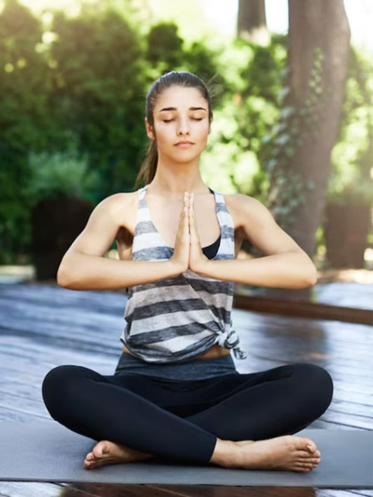 ಇದರ ನಂತರ, ನಿಧಾನವಾಗಿ ಅಂಗೈಗಳನ್ನು ಒಟ್ಟಿಗೆ ಇರಿಸಿ ಮತ್ತು ನಮಸ್ತೆ ಭಂಗಿಯನ್ನು (Namasthe pose)ಮಾಡಿ. ಅವುಗಳನ್ನು ಎದೆಯ ಬಳಿ ಇರಿಸಿ.