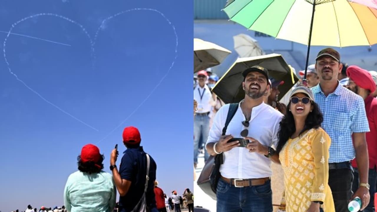 ಪ್ರೇಮಿಗಳಿಗೆ ಬಾನಂಗಳದಲ್ಲಿ ಉಡುಗೊರೆ ನೀಡಿದ ಏರೋ ಇಂಡಿಯಾ: ಚಿತ್ತಾರ ಕಣ್ತುಂಬಿಕೊಂಡ ಜನ