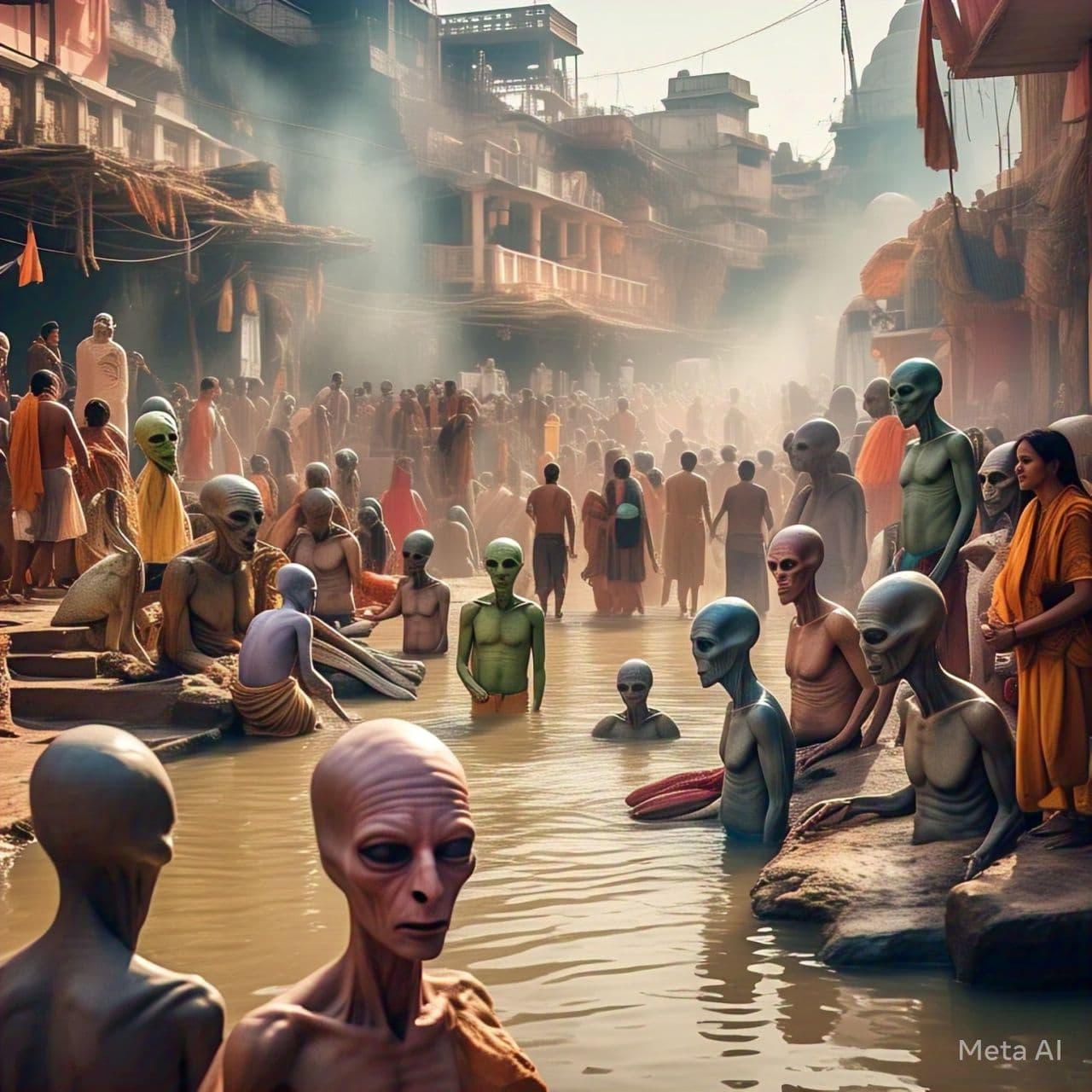 ಮಹಾಕುಂಭ ಮೇಳದಲ್ಲಿ ಕೋಟ್ಯಂತರ ಜನರು ಪುಣ್ಯಸ್ನಾನ ಮಾಡುತ್ತಿದ್ದಾರೆ. ಏಲಿಯನ್ಗಳು ಮಹಾಕುಂಭ ಮೇಳಕ್ಕೆ ಆಗಮಿಸಿದ ರೀತಿಯಲ್ಲಿ ಫೋಟೋಗಳನ್ನು ಕ್ರಿಯೇಟ್ ಮಾಡಲಾಗಿದೆ.