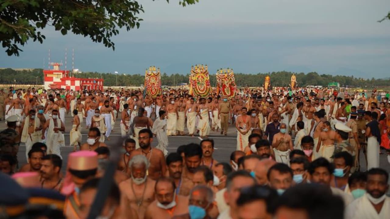 ಹೌದು ದಶಕಗಳ ಹಿಂದಿನ ಆಚರಣೆಗಳನ್ನು ಕಟ್ಟುನಿಟ್ಟಾದ ಅನುಸರಿಸಾಗುತ್ತಿದ್ದು, ಕೇರಳದ ತಿರುವನಂತಪುರಂ ವಿಮಾನ ನಿಲ್ದಾಣದ ಮುಖ್ಯ ರನ್ವೇಯನ್ನು ದೇವಾಲಯದ ಮೆರವಣಿಗೆ ಹಾದುಹೋಗಲು ಬುಧವಾರ ಕೆಲವು ಗಂಟೆಗಳ ಕಾಲ ಮುಚ್ಚಲಾಗಿದೆ.