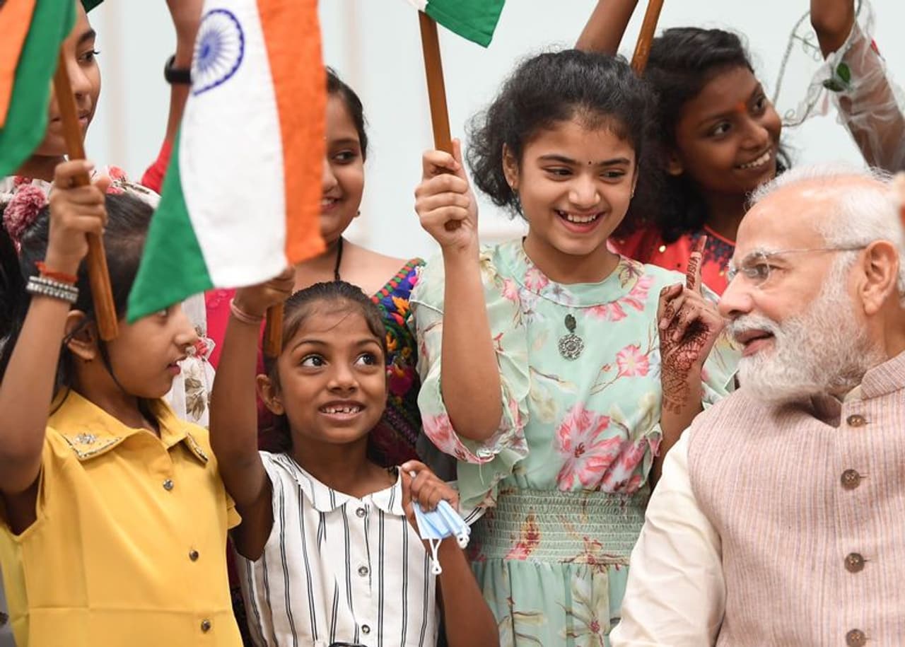 ಅಜಾದಿಕಾ ಅಮೃತ ಮಹೋತ್ಸವ, ಮಕ್ಕಳ ಜೊತೆ ತಿರಂಗ ಹಾರಿಸಿದ ಪ್ರಧಾನಿ ಮೋದಿ!