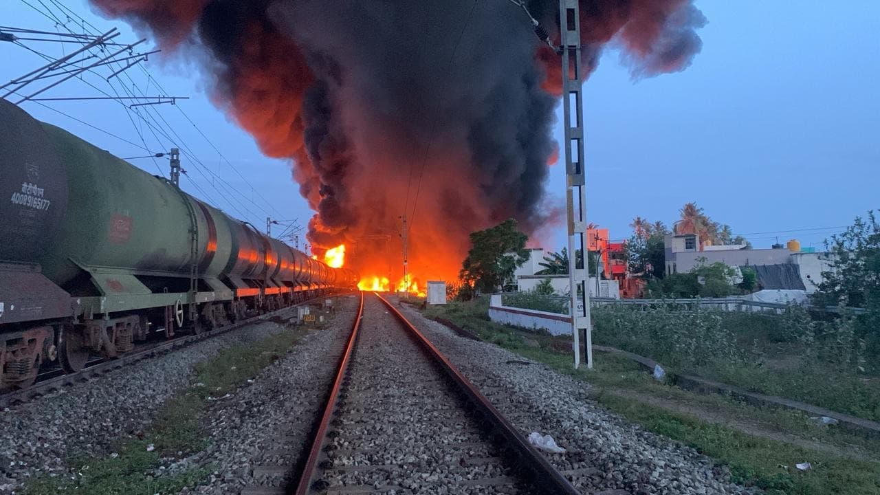 ಚೆನ್ನೈನಿಂದ ಬೆಂಗಳೂರಿಗೆ ಇಂಧನ ಸಾಗಿಸುತ್ತಿದ್ದ ರೈಲ್ವೆ ಗೂಡ್ಸ್ ಟ್ಯಾಂಕರ್ಗೆ ಬೆಂಕಿ: 29 ರೈಲುಗಳ ಸಂಚಾರ ರದ್ದು!
