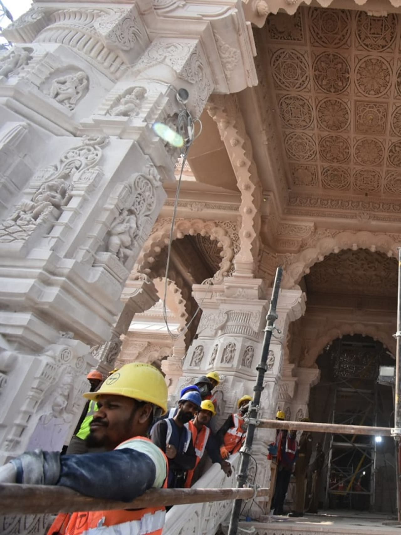 ರಾಮ ಮಂದಿರದ ಅಂತಿಮ ಹಂತದ ಕಾಮಗಾರಿಗಳು ನಡೆಯುತ್ತಿದೆ. ಇದೀಗ ಮಂದಿರದ ಪ್ರವೇಶ ದ್ವಾರದ ಬಳಿ ನಾಲ್ಕು ಮೂರ್ತಿಗಳ ಸ್ಥಾಪನೆ ಮಾಡಲಾಗಿದೆ. ರಾಜಸ್ಥಾನ ಮೂಲದ ಕಲ್ಲುಗಳಿಂದ ಈ ಮೂರ್ತಿಗಳ ಕೆತ್ತನೆ ಮಾಡಲಾಗಿದೆ.