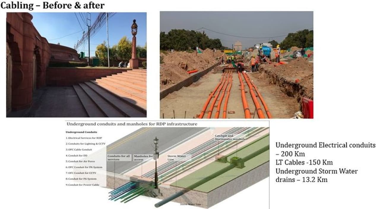 ಐತಿಹಾಸಿಕ ರಾಜಪಥದ ಸೆಂಟ್ರಲ್ ವಿಸ್ತಾದಲ್ಲಿ ಆಗಿರುವ ಬದಲಾವಣೆ ಚಿತ್ರಗಳು ಸೋಶಿಯಲ್ ಮೀಡಿಯಾದಲ್ಲಿ ವೈರಲ್ ಆಗುತ್ತಿವೆ. ಇಡೀ ಪ್ರದೇಶದಲ್ಲಿ ಸಂಪೂರ್ಣವಾಗಿ ಒಳಚರಂಡಿ ವ್ಯವಸ್ಥೆ, ವಿದ್ಯುತ್ ಸೇರಿದಂತೆ ಎಲ್ಲಾ ರೀತಿಯ ಕೇಬಲ್ಗಳನ್ನು ಅಂಡರ್ಗ್ರೌಂಡ್ನಲ್ಲಿಯೇ ಅಳವಡಿಸಲಾಗಿದೆ.