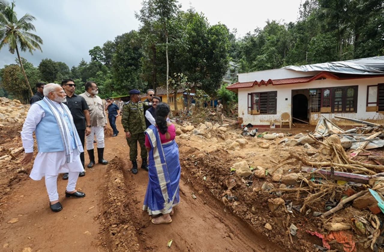 ಕೇರಳದ ಭೀಕರ ವಯನಾಡು ದುರಂತ ಸ್ಥಳಕ್ಕೆ ಪ್ರಧಾನಿ ನರೇಂದ್ರ ಮೋದಿ ಭೇಟಿ ನೀಡಿದ್ದಾರೆ. ದುರಂತ ಸ್ಥಳಗಳಿಗೆ ಬೇಟಿ ನೀಡಿದ ಮೋದಿ, ದುರಂತದ ಬೀಕರತೆಯನ್ನು ಪರಿಶೀಲಿಸಿದ್ದಾರೆ.