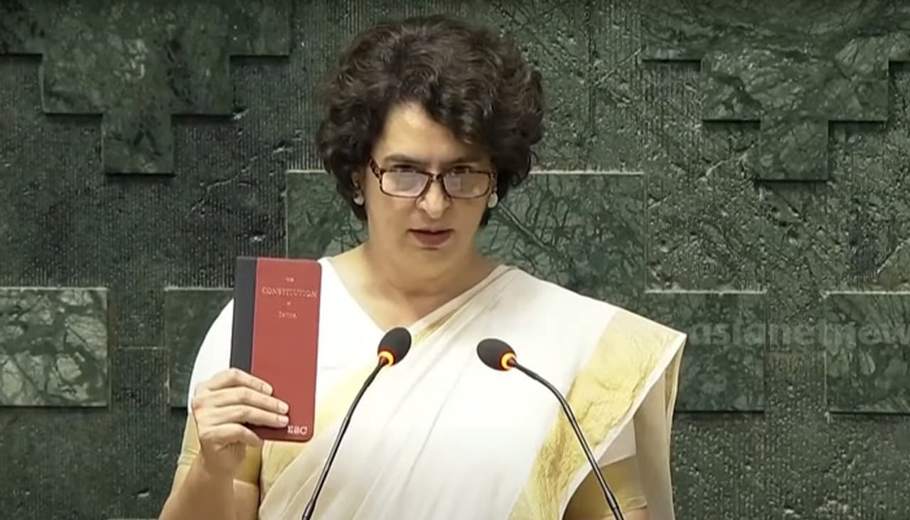 ಪ್ರಿಯಾಂಕಾ ಗಾಂಧಿ, ಕೇರಳದ ವಯನಾಡ್ ಕ್ಷೇತ್ರದಿಂದ ಲೋಕಸಭಾ ಉಪಚುನಾವಣೆಯಲ್ಲಿ ನಾಲ್ಕು ಲಕ್ಷಕ್ಕೂ ಹೆಚ್ಚು ಮತಗಳ ಅಂತರದಿಂದ ಗೆಲುವು ಸಾಧಿಸಿ ಸಂಸದರಾದರು. ಹಿಂದಿಯಲ್ಲಿ ಪ್ರಮಾಣವಚನ ಸ್ವೀಕರಿಸುವಾಗ ಅವರ ಕೈಯಲ್ಲಿ ಸಂವಿಧಾನದ ಪ್ರತಿ ಇತ್ತು.