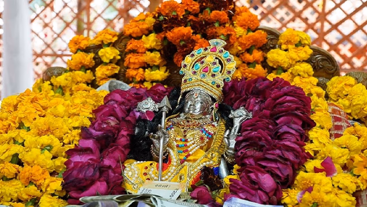 ಹೂವುಗಳಿಂದ ಅಲಂಕಾರಗೊಂಡ ರಾಮ ಲಲ್ಲಾ ಬೆಳ್ಳಿ ಮೂರ್ತಿಯನ್ನು ಮೆರವಣಿ ಮಾಡಲಾಗಿದೆ. ಅರ್ಚಕರು ರಾಮ ಲಲ್ಲಾ ಮೂರ್ತಿ ಎತ್ತಿಕೊಂಡು ಮೆರವಣಿ ಮಾಡಿದ್ದಾರೆ. ಇದೇ ವೇಳೆ ಕಲಷದ ಮೂಲಕ ಪೂರ್ಣಕುಂಭ ಸ್ವಾಗತ ಮಾಡಲಾಗಿದೆ.