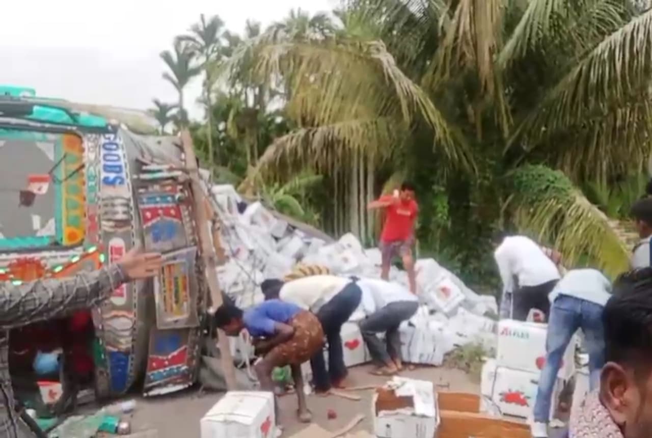 ಫ್ರೀಯಾಗಿ ಕೈಗೆ ಸಿಕ್ಕಷ್ಟು ಸೇಬುಹಣ್ಣು ಎತ್ತಿಕೊಂಡು ಹೋದ ಜನ; ಲಾರಿ ಬಿದ್ದಿದ್ದೇ ಇವರಿಗೆ ಹಬ್ಬವಾಯ್ತು!