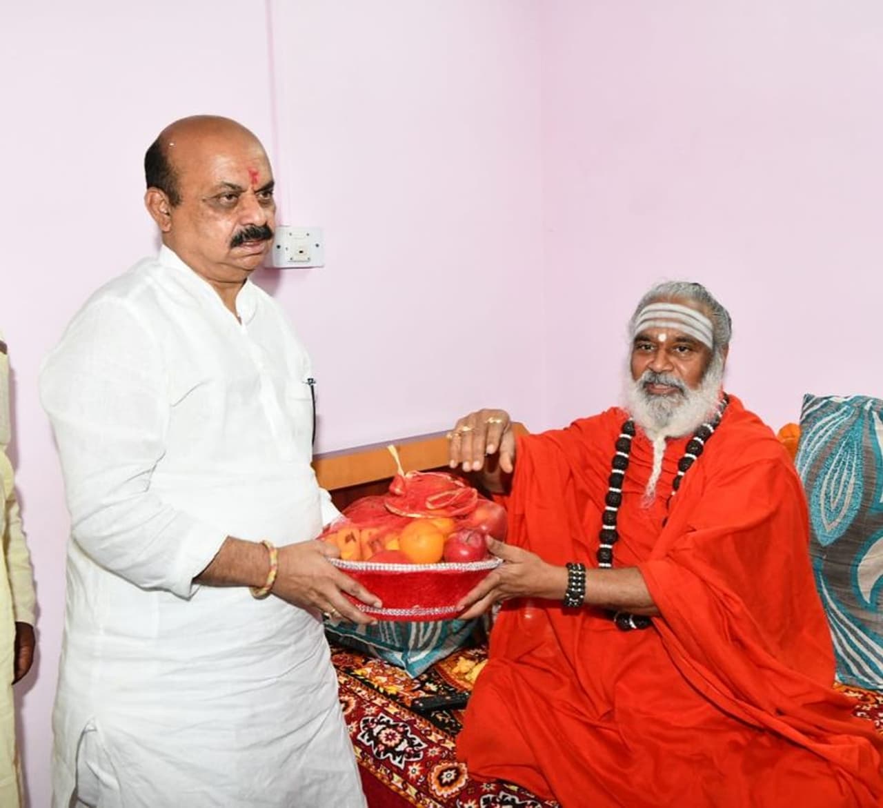 ಹುಬ್ಬಳ್ಳಿ(ಜು.29): ಮುಖ್ಯಮಂತ್ರಿ ಬಸವರಾಜ ಬೊಮ್ಮಾಯಿ ಅವರು ಇಂದು(ಗುರುವಾರ) ಬಾಳೆಹೊನ್ನೂರಿನ ರಂಭಾಪುರಿ ಪೀಠದ ಡಾ.ವೀರಸೋಮೇಶ್ವರ ಜಗದ್ಗುರುಗಳನ್ನು ಭೇಟಿಯಾಗಿ ಆಶೀರ್ವಾದವನ್ನ ಪಡೆದುಕೊಂಡಿದ್ದಾರೆ.