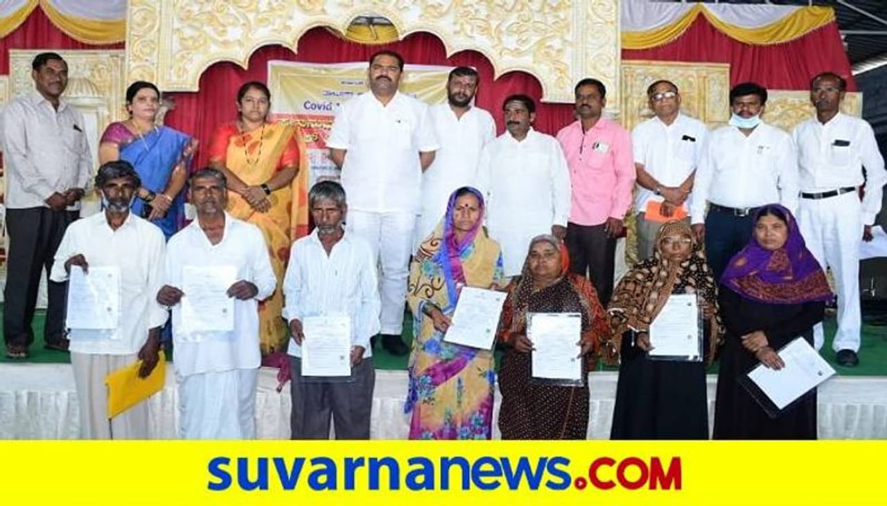 ಶಹಾಬಾದ(ಡಿ.19): ನಗರದ ಸಹರಾ ಸಭಾಗೃಹದಲ್ಲಿ ಶನಿವಾರ ಕೋವಿಡ್-19(Covid-19) ಹಾಗೂ ಸಿಡಿಲು ಬಡಿದು ಮೃತಪಟ್ಟ ಕುಟುಂಬಕ್ಕೆ ಕುಟುಂಬಕ್ಕೆ ಶಾಸಕ ಬಸವರಾಜ ಮತ್ತಿಮುಡ(Basavaraj Mattimadu) ವಿತರಿಸಿದ್ದಾರೆ.