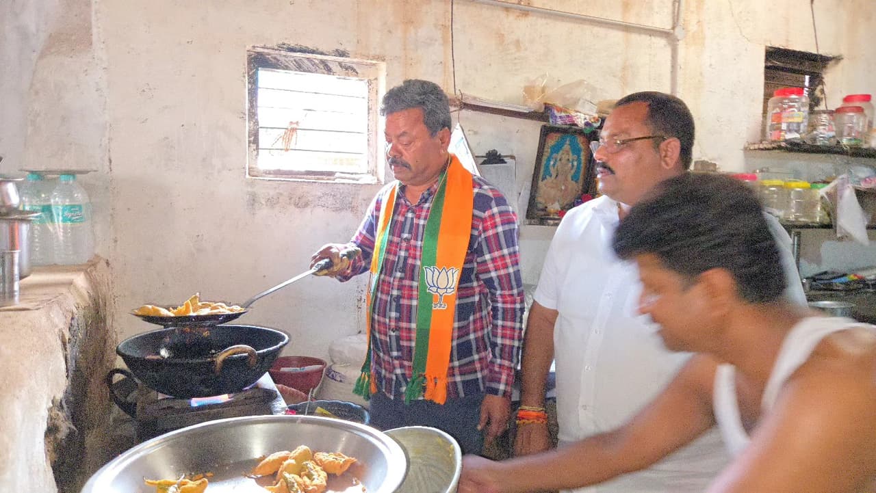 ಬಿಸಿ ಬಿಸಿಯಾದ ಮಿರ್ಚಿ ಬಜ್ಜಿ ಮಾಡಿದ ಮಾಜಿ ಶಾಸಕ ರೇಣುಕಾಚಾರ್ಯ