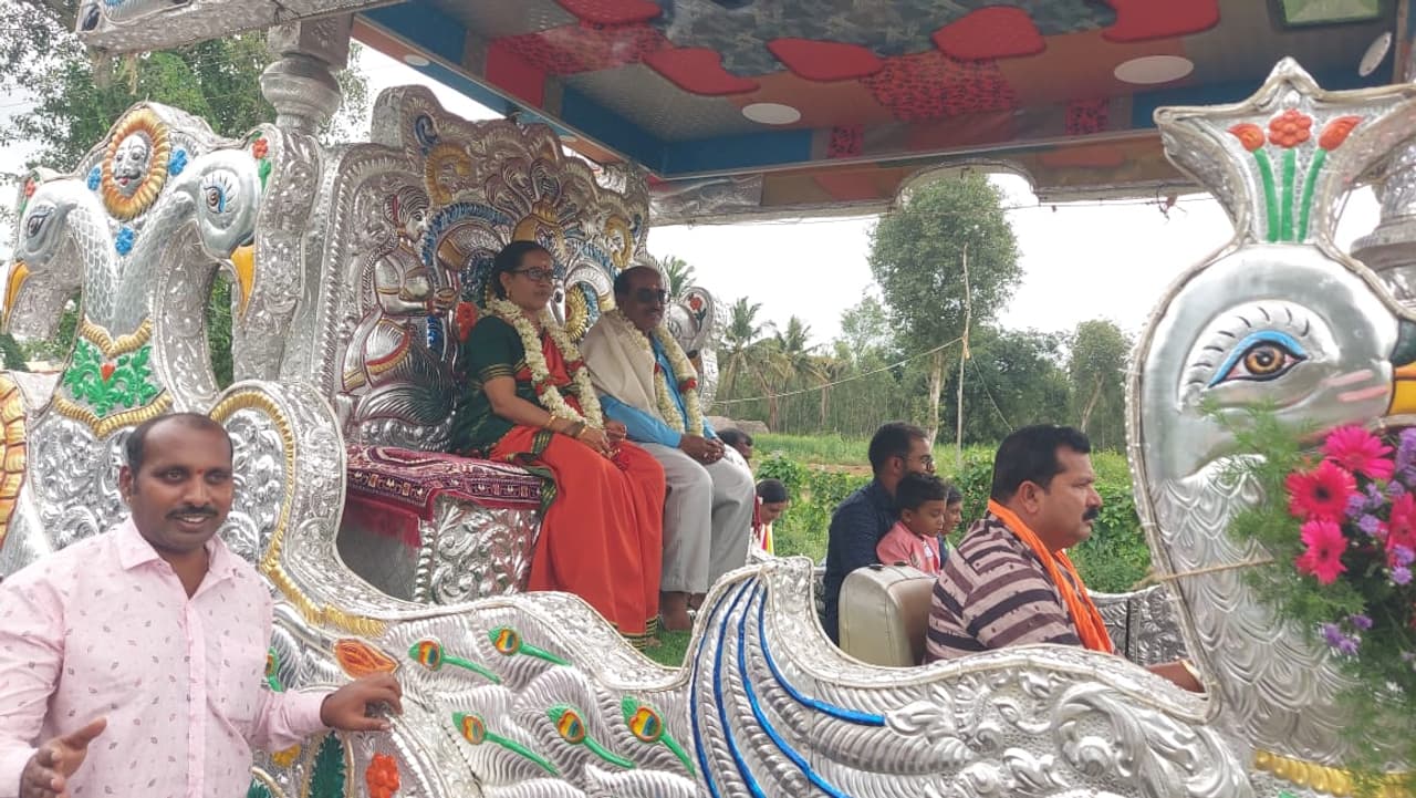 ನಿವೃತ್ತ ಶಿಕ್ಷಕನಿಗೆ ಬೆಳ್ಳಿ ರಥದಲ್ಲಿ ಅದ್ದೂರಿ ಬೀಳ್ಕೊಡುಗೆ, ಶಿಕ್ಷಕ ಸೇವೆಗೆ ಗ್ರಾಮಸ್ಥರಿಂದ ಗೌರವ