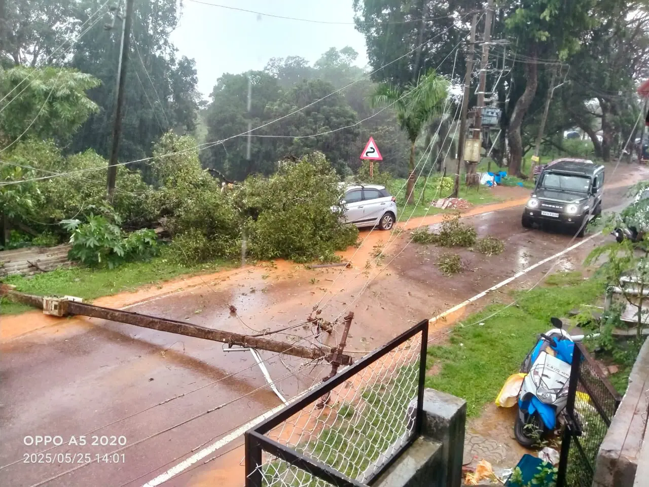 ಬೇಸಿಗೆಯಲ್ಲಿಯೇ ಕಾಮಗಾರಿ ಮುಗಿಸದ ವಿಳಂಬ ಮಾಡಿದ ಹಿನ್ನೆಲೆಯಲ್ಲಿ ಇಂತಹ ಪರಿಸ್ಥಿತಿ ನಿರ್ಮಾಣ ಆಗಲು ಕಾರಣವಾಗಿದೆ. ಒಟ್ಟಿನಲ್ಲಿ ಜಿಲ್ಲೆಯಲ್ಲಿ ಮಳೆಯ ಪ್ರಮಾಣ ತೀವ್ರಗೊಳ್ಳುತ್ತಿದ್ದು ಪರಿಸ್ಥಿತಿ ಏನಾಗುವುದೋ ಎನ್ನುವಂತೆ ಆಗಿದೆ. ಸದ್ಯ ಮಳೆ ತೀವ್ರಗೊಂಡಿರುವ ಹಿನ್ನೆಲೆಯಲ್ಲಿ ತಡೆಗೋಡೆ ಕಾಮಗಾರಿಯನ್ನು ಸ್ಥಗಿತಮಾಡಲಾಗಿದೆ. ಕಳೆದ ಮಳೆಗಾಲದ ಸಂದರ್ಭದಲ್ಲೂ ಇದೇ ರೀತಿಯಾಗಿ ರಸ್ತೆಯನ್ನು ಬಂದ್ ಮಾಡಿ ಮತ್ತೊಂದು ರಸ್ತೆಯಲ್ಲಿ ವಾಹನಗಳ ಸಂಚಾರಕ್ಕೆ ಅವಕಾಶ ನೀಡಲಾಗಿತ್ತು. ಅವಧಿಗೂ ಮುನ್ನವೇ ಶುರುವಾದ ಮುಂಗಾರು ಮಳೆಗೆ ಕೊಡಗು ಜಿಲ್ಲೆ ತತ್ತರಿಸಿ ಹೋಗಿದೆ. ಭಾರೀ ಗಾಳಿ ಜೊತೆಗೆ ಗಂಟೆಗೆ 45 ರಿಂದ 50 ಕಿಲೋ ಮೀಟರ್ ವೇಗದಲ್ಲಿ ಗಾಳಿ ಬೀಸುತ್ತಿರುವುದರಿಂದ ಜಿಲ್ಲಾ ಕೇಂದ್ರ ಮಡಿಕೇರಿ ಸೇರಿದಂತೆ, ಸೋಮವಾರಪೇಟೆ, ವಿರಾಜಪೇಟೆ, ಪೊನ್ನಂಪೇಟೆ ಸೇರಿ ಹಲವೆಡೆ ಬೃಹತ್ ಗಾತ್ರದ ಮರ ಹಾಗೂ ವಿದ್ಯುತ್ ಕಂಬಗಳು ಧರೆಗೆ ಉರುಳಿ ಬಿದ್ದಿವೆ.