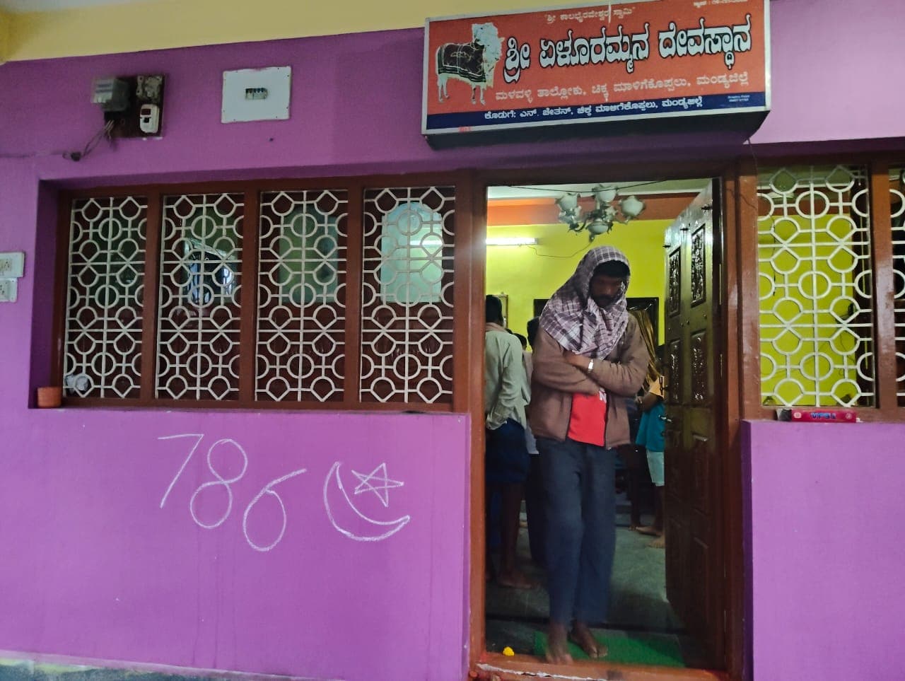 ಮಂಡ್ಯ ಏಳೂರಮ್ಮ ದೇವಸ್ಥಾನದಲ್ಲಿ ಕಳ್ಳತನ ಮಾಡಿ, ಗೋಡೆ ಮೇಲೆ ಅನ್ಯಧರ್ಮದ ಚಿಹ್ನೆ ಬರೆದು ವಿಕೃತಿ!