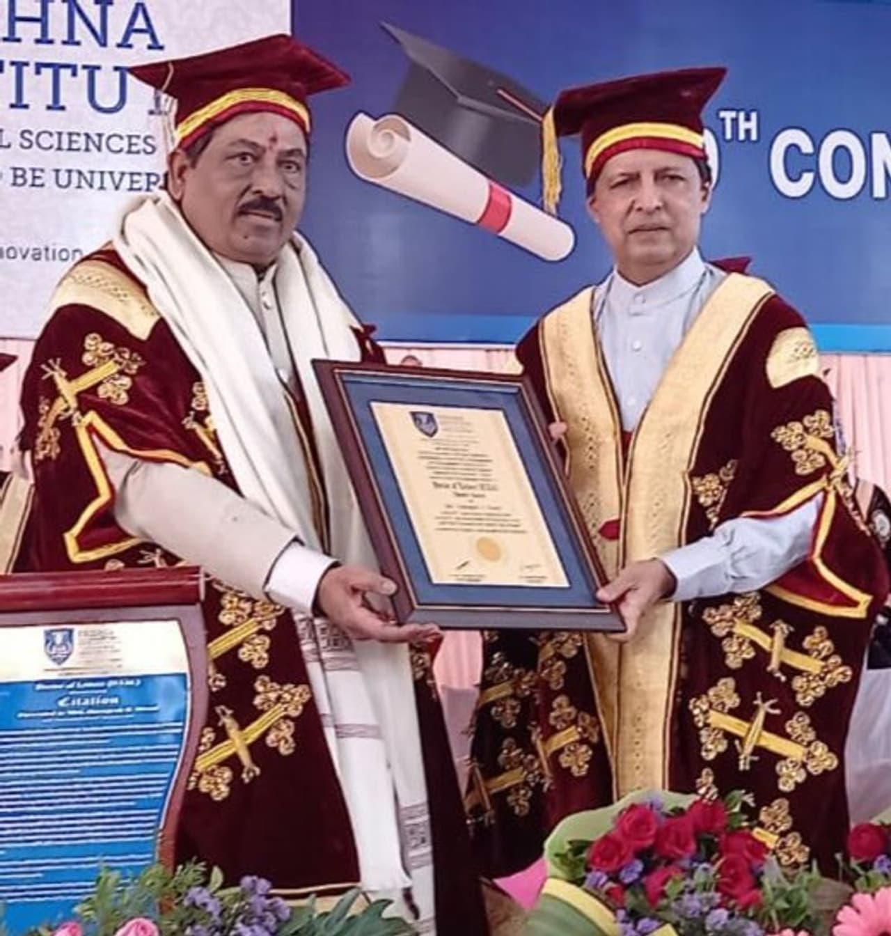 ಬಾಗಲಕೋಟೆ(ಡಿ.06): ಮಹಾರಾಷ್ಟ್ರದ ಕರಾಡದ ಕೃಷ್ಣಾ ಇನಸ್ಟಿಟ್ಯೂಟ್ ಆಫ್ ಮೆಡಿಕಲ್ ಸೈನ್ಸ್ ಡೀಮ್ಡ್ ವಿಶ್ವವಿದ್ಯಾಲಯ(Krishna Institute of Medical Sciences University) ವತಿಯಿಂದ ರಾಜ್ಯದ ಕೈಗಾರಿಕಾ ಸಚಿವ ಮುರುಗೇಶ ನಿರಾಣಿಯವರಿಗೆ(Murugesh Nirani) ಗೌರವ ಡಾಕ್ಟರೇಟ್ ಪದವಿ ಪ್ರದಾನ ಮಾಡಲಾಯಿತು.