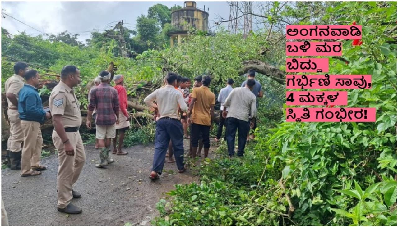ಅಂಗನವಾಡಿ ಶಾಲೆ ಬಳಿ ಆಲದ ಮರ ಕುಸಿತ: ಗರ್ಭಿಣಿ ಸಾವು, 4 ಮಕ್ಕಳಿಗೆ ಗಾಯ
