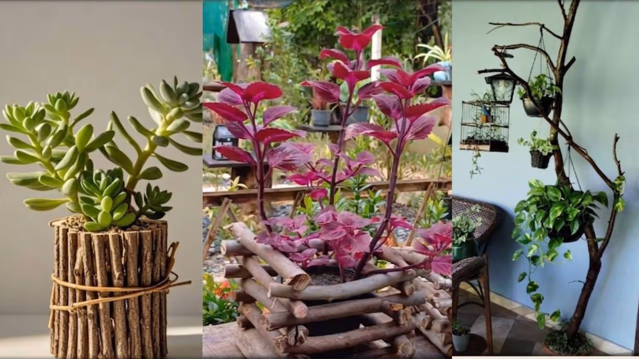 ನಿಮ್ಮ ಮನೆಯ ಸುತ್ತಮುತ್ತ ಬಿದ್ದಿರುವ ಒಣಗಿದ ಮರದ ಕೊಂಬೆಗಳು ಅಥವಾ ಕಟ್ಟಿಗೆಗಳನ್ನು ಬಳಸಿ ಸುಂದರವಾದ ಪ್ಲಾಂಟರ್ಗಳನ್ನು ತಯಾರಿಸಬಹುದು. ಹ್ಯಾಂಗಿಂಗ್ ಪ್ಲಾಂಟರ್, ಹೂದಾನಿ ಅಲಂಕಾರ, ಮತ್ತು ಚೌಕಾಕಾರದ ಪ್ಲಾಂಟರ್ಗಳನ್ನು ಮಾಡುವ ಮೂಲಕ ಮನೆಗೆ ಆಕರ್ಷಕ ಹಾಗೂ ನ್ಯಾಚುರಲ್ ಲುಕ್ ನೀಡಬಹುದು.