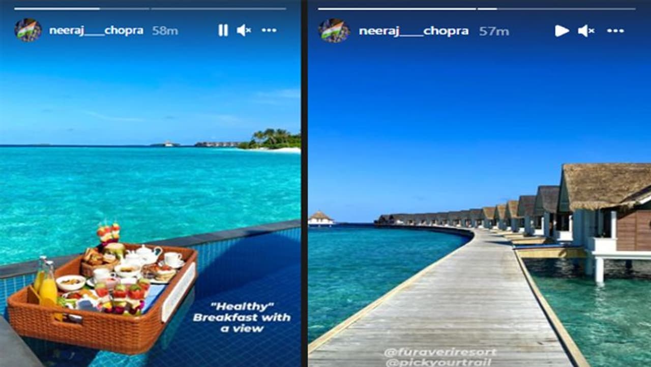 ಪ್ರಸ್ತುತ ನೀರಜ್ ಚೋಪ್ರಾ ತಮ್ಮ ಬಿಗಿಯಾದ ವೇಳಾಪಟ್ಟಿಯಿಂದ ವಿರಾಮ (break) ತೆಗೆದುಕೊಳ್ಳುತ್ತಿದ್ದಾರೆ ಮತ್ತು ಶುಕ್ರವಾರ ಕೆಲವು ಫೋಟೋಗಳನ್ನು ತಮ್ಮ ಅಭಿಮಾನಿಗಳೊಂದಿಗೆ ಹಂಚಿಕೊಂಡಿದ್ದಾರೆ. ಈ ಚಿತ್ರಗಳಲ್ಲಿ, ನೀರಜ್ ಮಾಲ್ಡೀವ್ಸ್ನಲ್ಲಿ (Maldives) ರಜೆಯಲ್ಲಿದ್ದಾರೆ ಮತ್ತು ಬ್ರೇಕ್ಫಾಸ್ಟ್ ಆನಂದಿಸುತ್ತಿದ್ದಾರೆ.
