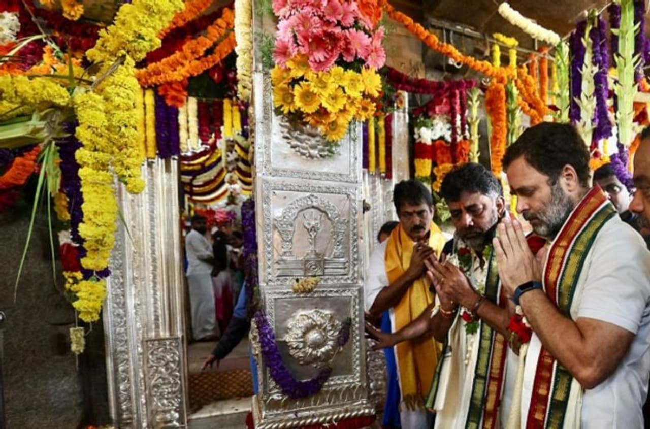 ಇನ್ನು, ಇಂದು ರಾಹುಲ್ ಗಾಂಧಿ ಮೈಸೂರಿನ ಚಾಮುಂಡೇಶ್ವರಿ ಬೆಟ್ಟಕ್ಕೂ ಹೋಗಿ ಪೂಜೆ ಸಲ್ಲಿಸಿದ್ದಾರೆ. ಹೀಗೆ, ರಾಹುಲ್ ಗಾಂಧಿಯವರ ಟೆಂಪಲ್ ರನ್ ಮುಂದುವರಿದಿದೆ.