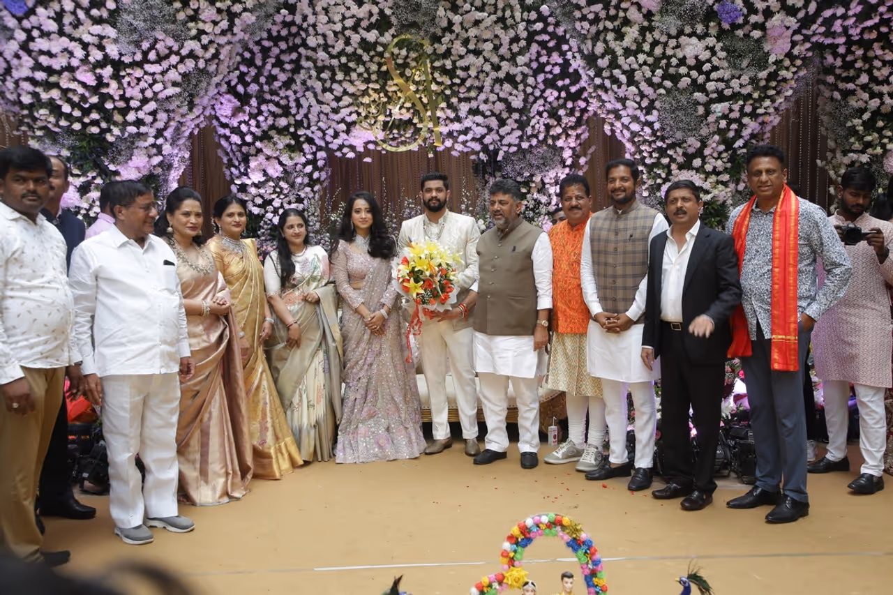 ಎಸ್ಆರ್ ವಿಶ್ವನಾಥ್ ಬಿಜೆಪಿಯ ಯಲಹಂಕ ಶಾಸಕ, ಇನ್ನು ಬೈರತಿ ಸುರೇಶ್ ಪಕ್ಕದ ಹೆಬ್ಬಾಳ ಕ್ಷೇತ್ರದ ಶಾಸಕ. ವಿಶ್ವನಾಥ್ ಅವರ ಪುತ್ರಿ ಅಪೂರ್ವ ಹಾಗೂ ಬೈರತಿ ಸುರೇಶ್ ಪುತ್ರ ಸಂಜಯ್ ಅವರು ಲವ್ ಕಮ್ ಅರೇಂಜ್ಡ್ ಮ್ಯಾರೇಜ್ ಆಗಿದ್ದಾರೆ. ಬುಧವಾರ ಇವರ ಎಂಗೇಜ್ಮೆಂಟ್ ಬೆಂಗಳೂರಿನ ಖಾಸಗಿ ಹೋಟೆಲ್ನಲ್ಲಿ ನಡೆದಿದೆ. ಕರ್ನಾಟಕ ರಾಜ್ಯಪಾಲ ಥಾವರ್ ಚಂದ್ ಗೆಹ್ಲೋಟ್, ಡಿಸಿಎಂ ಡಿಕೆ ಶಿವಕುಮಾರ್ ಸೇರಿದಂತೆ ಇಬ್ಬರು ರಾಜಕೀಯ ನಾಯಕರ ಆಪ್ತರು ಆಗಮಿಸಿ ಜೋಡಿಗೆ ಶುಭ ಹಾರೈಸಿದ್ದಾರೆ.