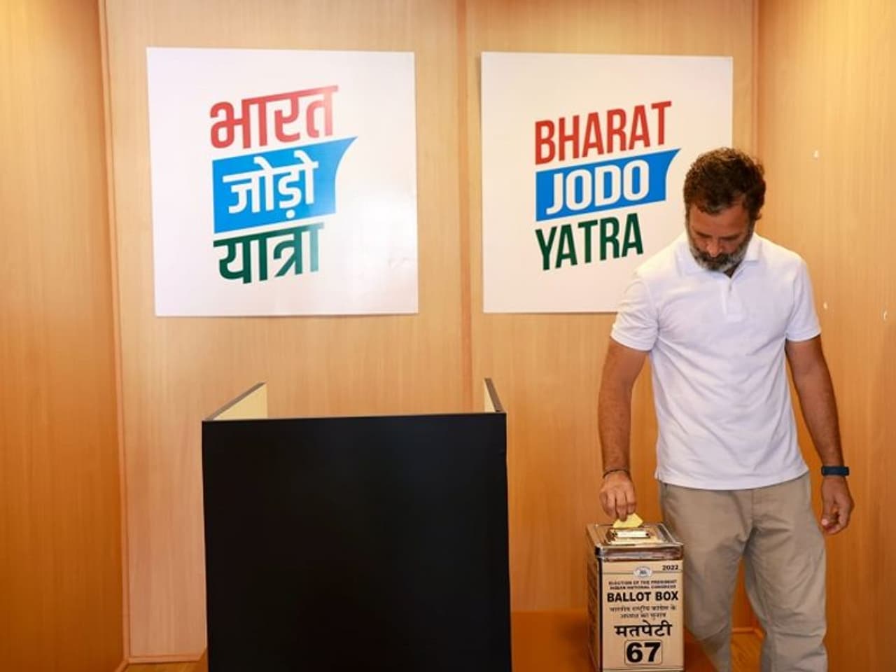 ಇಂದು ಕಾಂಗ್ರೆಸ್ ಅಧ್ಯಕ್ಷೀಯ ಚುನಾವಣೆ ಹಿನ್ನೆಲೆಯಲ್ಲಿ ಕಾಂಗ್ರೆಸ್ ಸಂಸದ ರಾಹುಲ್ ಗಾಂಧಿ ಪಾದಯಾತ್ರೆಗೆ ಬ್ರೇಕ್ ಕೊಟ್ಟು ಕರ್ನಾಟಕದ ಬಳ್ಳಾರಿಯಲ್ಲಿ ಮತದಾನ ಮಾಡಿದ್ದಾರೆ.