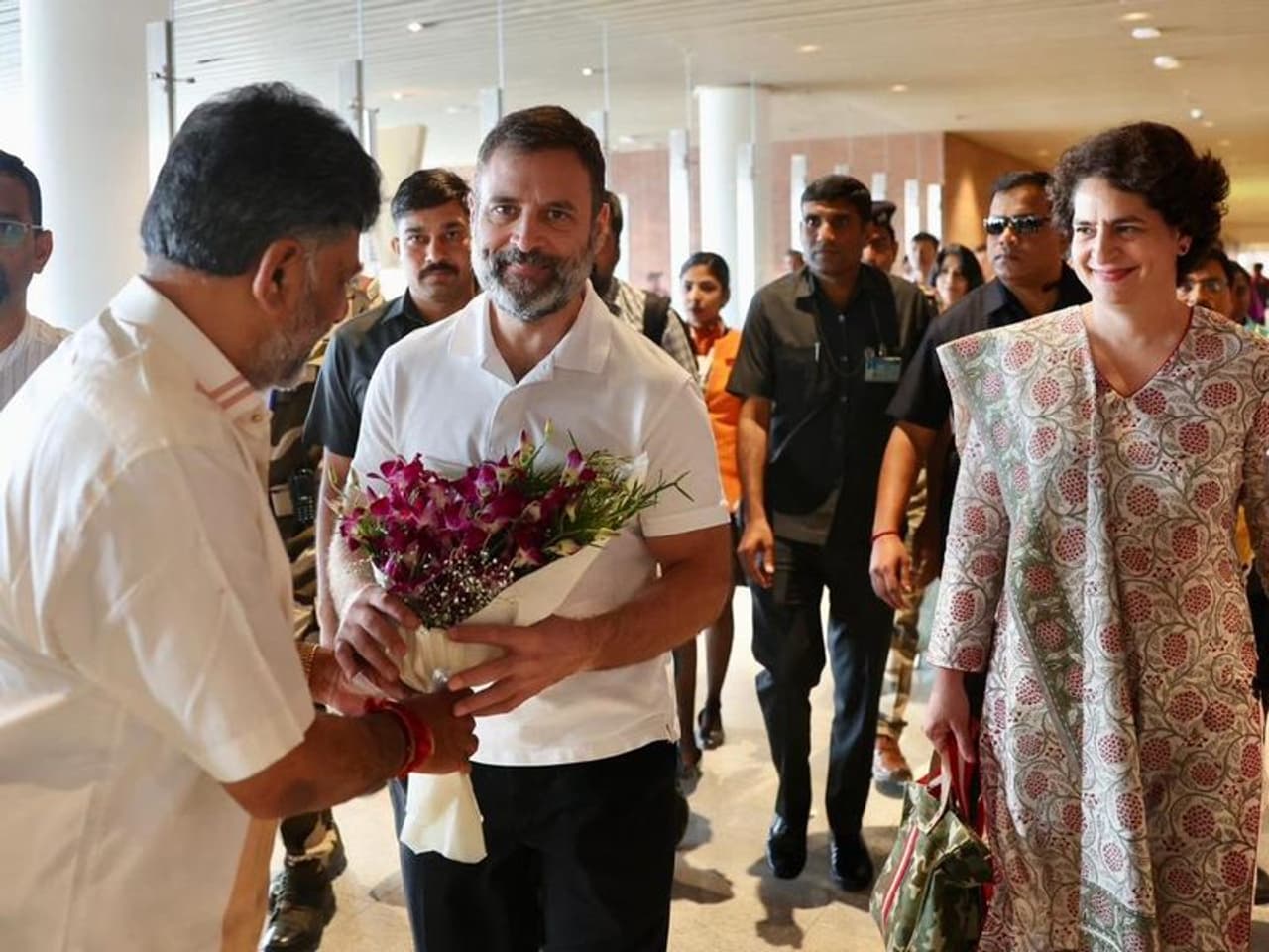 - ಸಿಎಂ, ಡಿಸಿಎಂ ಪ್ರಮಾಣ ವಚನ: ಕೆಂಪೇಗೌಡ ಏರ್ಪೋರ್ಟ್ನಲ್ಲಿ ರಾಹುಲ್, ಪ್ರಿಯಾಂಕಾ ಗಾಂಧಿ ಸ್ವಾಗತಿಸಿದ ಡಿಕೆಶಿ