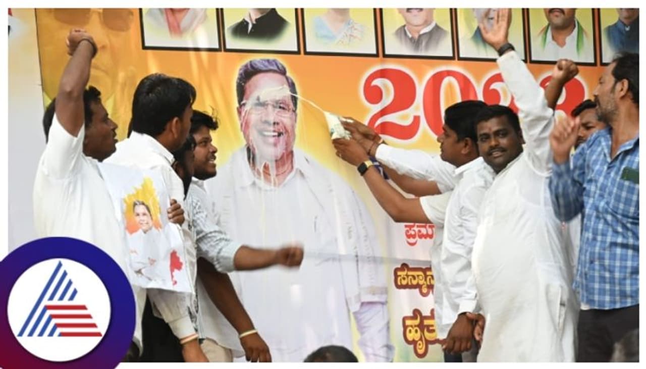 ಫೋಟೋ ಕೃಪೆ: ವೀರಮಣಿ, ಕನ್ನಡ ಪ್ರಭಬೆಂಗಳೂರು (ಮೇ.17): ಕಾಂಗ್ರೆಸ್ ಪಕ್ಷವು ಕರ್ನಾಟಕಕ್ಕೆ ತನ್ನ ನೂತನ ಮುಖ್ಯಮಂತ್ರಿಯಾಗಿ ಸಿದ್ದರಾಮಯ್ಯ ಅವರನ್ನು ಘೋಷಿಸಲಿದೆ ಎಂಬ ಸುದ್ದಿಯ ಬೆನ್ನಲ್ಲೇ ಅಭಿಮಾನಿಗಳ ಸಂಭ್ರಮ ಮುಗಿಲು ಮುಟ್ಟಿದೆ. ರಾಜ್ಯ ನಾನಾ ಭಾಗಗಳಲ್ಲಿ ಸಿದ್ದರಾಮಯ್ಯ ಅಭಿಮಾನಿಗಳು ಇನ್ನಿಲ್ಲದಂತೆ ಸಂಭ್ರಮಿಸುತ್ತಿದ್ದಾರೆ. ತವರು ಜಿಲ್ಲೆ ಮೈಸೂರಿನ ಸಿದ್ದರಾಮನಹುಂಡಿಯಲ್ಲಿ ಕೂಡ ಅಭಿಮಾನಿಗಳು ಸಂಭ್ರಮಿಸಿದ್ದಾರೆ. ಸಿದ್ದರಾಮಯ್ಯ ಭಾವಚಿತ್ರ ಕ್ಕೆ ಹಾಲಿನ ಅಭಿಷೇಕ ಮಾಡಿದ್ದಾರೆ. ಫ್ಲೆಕ್ಸ್ನಲ್ಲಿ ಸಿದ್ದರಾಮಯ್ಯ ಜೊತೆಗೆ ಮೊಮ್ಮಗ ಧವನ್ ರಾಕೇಶ್ ಸಿದ್ದರಾಮಯ್ಯ ಭಾವಚಿತ್ರದಲ್ಲಿ ಕೂಡ ಮುಂದಿನ ವಾರಸುದಾರ ಎಂದು ಅಭಿಮಾನಿಗಳು ಬರೆದಿದ್ದಾರೆ.