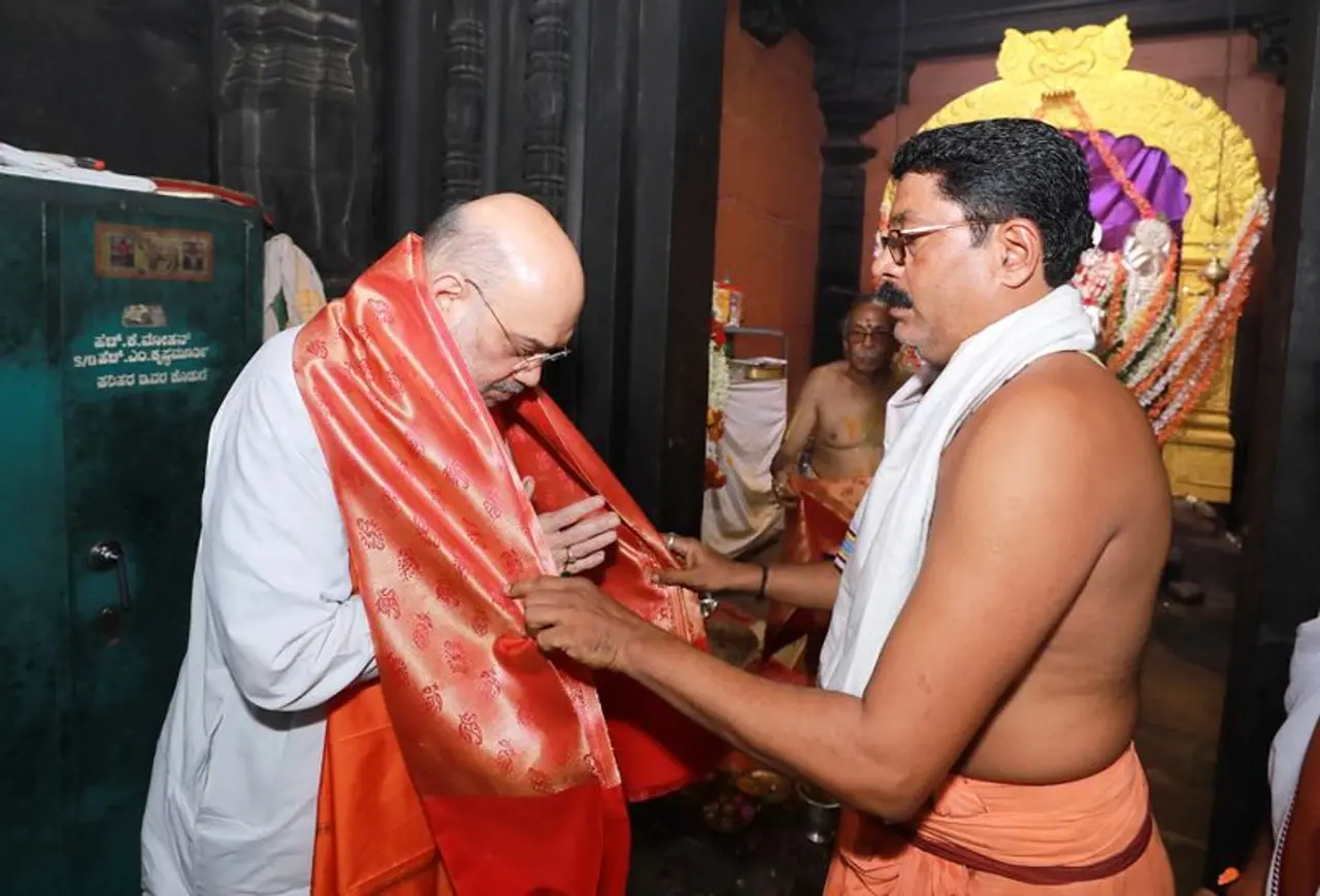 ದಾವಣಗೆರೆ: ಹರಿಹರೇಶ್ವರ ದೇವಸ್ಥಾನಕ್ಕೆ ಕೇಂದ್ರ ಸಚಿವ ಅಮಿತ್ ಶಾ ಭೇಟಿ