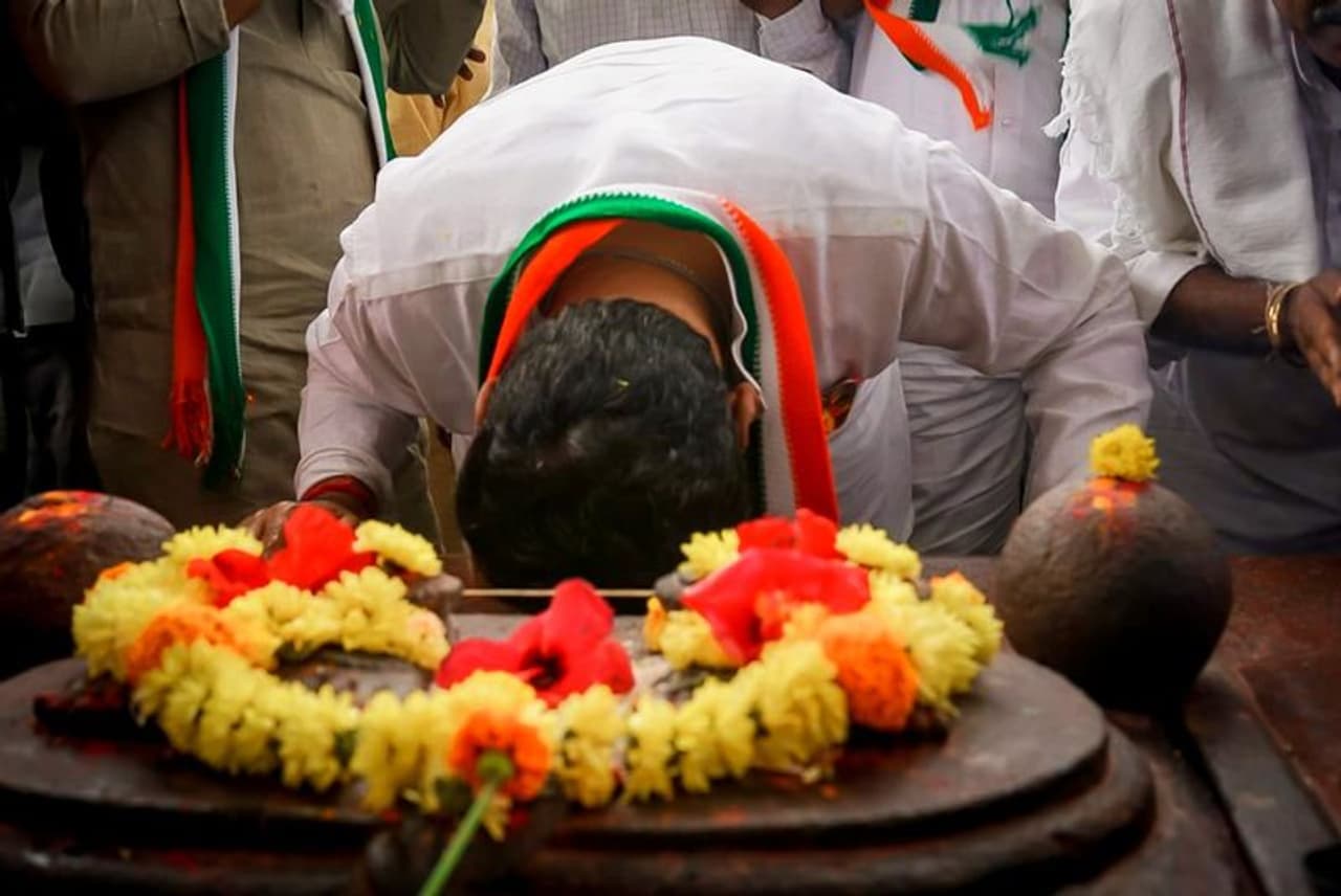 ಹಾನಗಲ್ಲ(Hanagl) ಪಟ್ಟಣಕ್ಕೆ ಆಗಮಿಸಿದ ಕಾಂಗ್ರೆಸ್(Congress) ರಾಜ್ಯಾಧ್ಯಕ್ಷ ಡಿ.ಕೆ. ಶಿವಕುಮಾರ ಹಾನಗಲ್ಲಿನ ಗ್ರಾಮದೇವತೆಯ ಪಾದಗಟ್ಟಿಗೆ ಪೂಜೆ ಸಲ್ಲಿಸಿ ಹರಕೆಯಂತೆ 11 ಟೆಂಗಿನಕಾಯಿಯನ್ನು ಒಡೆದರು. ಆನಂತರ ಕಾಶ್ಮೀರಿ ದರ್ಗಾಕ್ಕೆ(Kashmiri Dargah) ತೆರಳಿ ಪೂಜೆ ಸಲ್ಲಿಸಿದರು. ಆನಂತರ ಶ್ರೀ ಕುಮಾರೇಶ್ವರ ವಿರಕ್ತಮಠಕ್ಕೆ ತೆರಳಿ ಶ್ರೀಗಳ ಗದ್ದುಗೆಗೆ ಪೂಜೆ ಸಲ್ಲಿಸಿದರು. ತಾಲೂಕಿನ ಹೀರೂರು ಬಸವಣ್ಣ ದೇವರಿಗೆ ಪೂಜೆ ಸಲ್ಲಿಸಿ, ಗೆಜ್ಜಿಹಳ್ಳಿಯ ಜಲಕಂಟೇಶ್ವರ ದೇವಸ್ಥಾನದಲ್ಲಿ(Temple) ವಿಶೇಷ ಪೂಜೆ ಸಲ್ಲಿಸಿದರು.