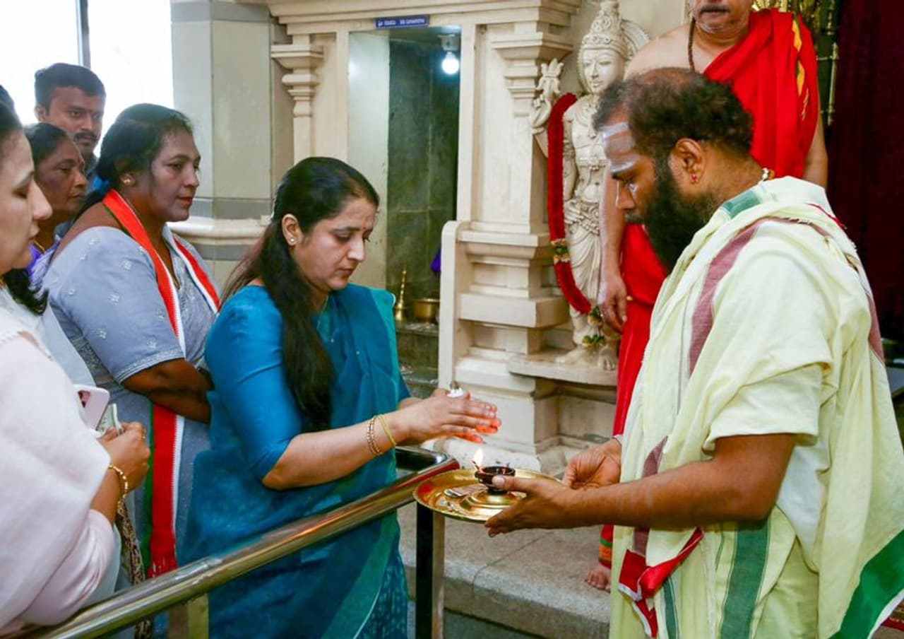 ಬೆಂಗಳೂರು ಗ್ರಾಮಾಂತರ ಲೋಕಸಭಾ ಕ್ಷೇತ್ರ ಈ ಬಾರಿ ಭಾರೀ ಪೈಪೋಟಿಯೇ ನಡೆಯಲಿದೆ ಕಾರಣ ಮೈತ್ರಿ ಅಭ್ಯರ್ಥಿಯಾಗಿ ಡಾ ಮಂಜುನಾಥ ಸ್ಪರ್ಧಿಸಿದ್ದಾರೆ. ಹೀಗಾಗಿ ಡಿಕೆ ಸುರೇಶ್ ಗೆಲ್ಲಲೇಬೇಕಾಗಿದೆ. ಅದಕ್ಕಾಗಿ ಡಿಸಿಎಂ ಶಿವಕುಮಾರ ಅವರ ಪತ್ನಿಯೇ ಪ್ರಚಾರಕ್ಕಿಳಿದಿದ್ದಾರೆ. ಗೆಲುವಿಗಾಗಿ ದೇವರಲ್ಲಿ ವಿಶೇಷ ಪೂಜೆ ಸಲ್ಲಿಸಿದ್ದಾರೆ.