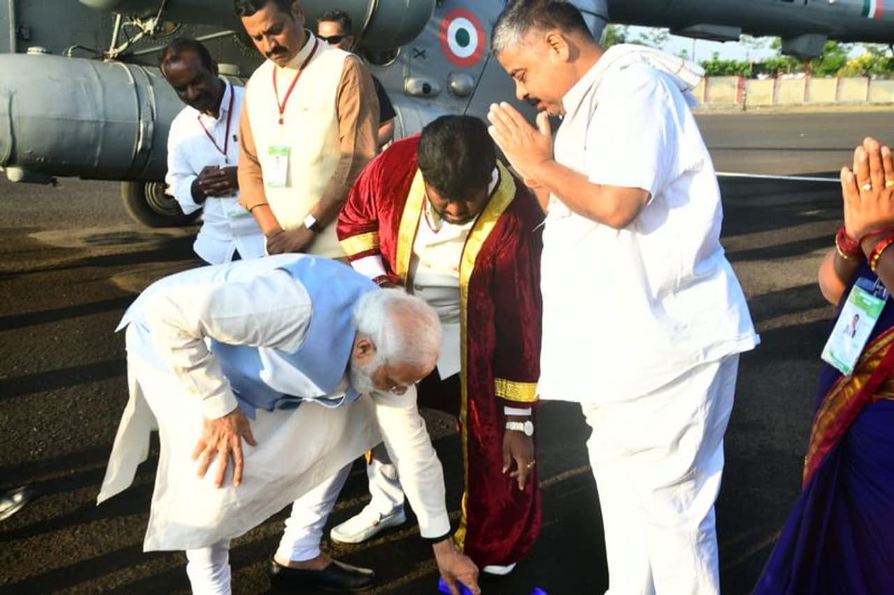 ಕಲಬುರಗಿ ಹೆಲಿಪ್ಯಾಡ್ನಲ್ಲಿ ಸರಳತೆ ಮೆರೆದು, ಮೋಡಿ ಮಾಡಿದ ಪ್ರಧಾನಿ