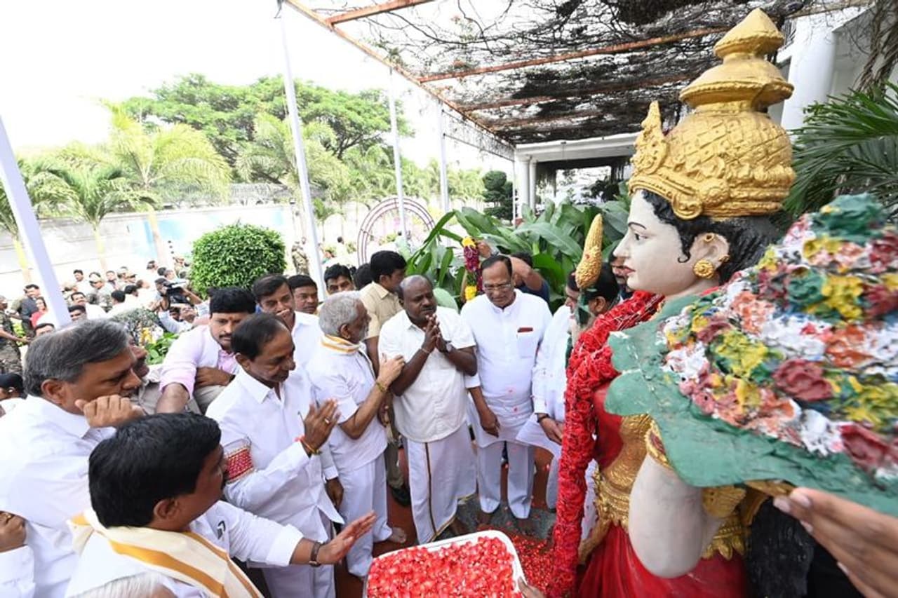 ಕಾರ್ಯಕ್ರಮದಲ್ಲಿ ಎಚ್ಡಿ ಕುಮಾರಸ್ವಾಮಿ ಅಲ್ಲ, ಹಿರಿಯ ನಟ ಹಾಗೂ ಕೆಸಿಆರ್ ಪಕ್ಷದ ಸದಸ್ಯ ಪ್ರಕಾಶ್ ರಾಜ್ ಕೂದ ಹಾಜರಿದ್ದರು.