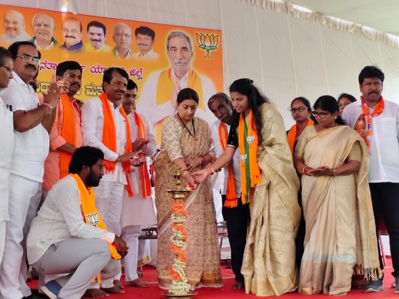 ಯಾದಗಿರಿಯಲ್ಲಿ ಬಿಜೆಪಿ ಬಹಿರಂಗ ಸಮಾವೇಶ: ಶಾಸಕ ವೆಂಕಟರೆಡ್ಡಿ ಪರವಾಗಿ ಮತಯಾಚನೆ ಮಾಡಿದ ಸ್ಮೃತಿ