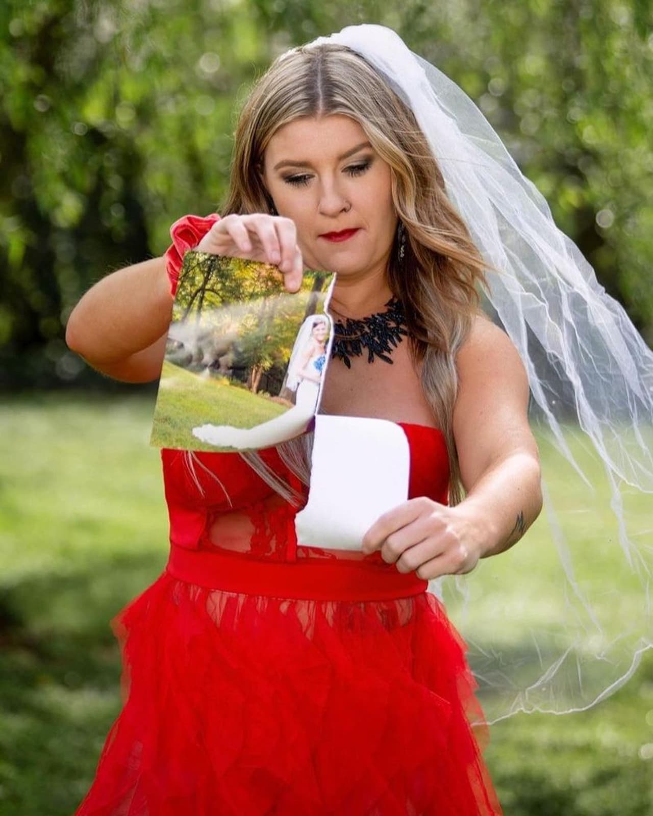 ಮಹಿಳೆಯ ಹೆಸರು ಲಾರೆನ್ ಬ್ರೂಕ್. ಅವರ ವಿಚ್ಛೇದನದ ಫೋಟೋಶೂಟ್ ಚಿತ್ರಗಳು 'ಪ್ಯುಬಿಟಿ' ಪುಟದಲ್ಲಿ ಕಾಣಿಸಿಕೊಂಡಿವೆ. ಲಾರೆನ್ ಬ್ಲಡ್ ರೆಡ್ ಬಣ್ಣದ ಸುಂದರವಾದ ಗೌನ್ ಧರಿಸಿ ಫೋಟೋಶೂಟ್ಗೆ ಆಗಮಿಸಿದ್ದಾರೆ. ಮಹಿಳೆ ಡಿವೋರ್ಸ್ ಎಂಬ ಬ್ಯಾಂಡ್ ಧರಿಸಿರುವುದನ್ನು ಸಹ ಫೋಟೋದಲ್ಲಿ ನೋಡಬಹುದು.
