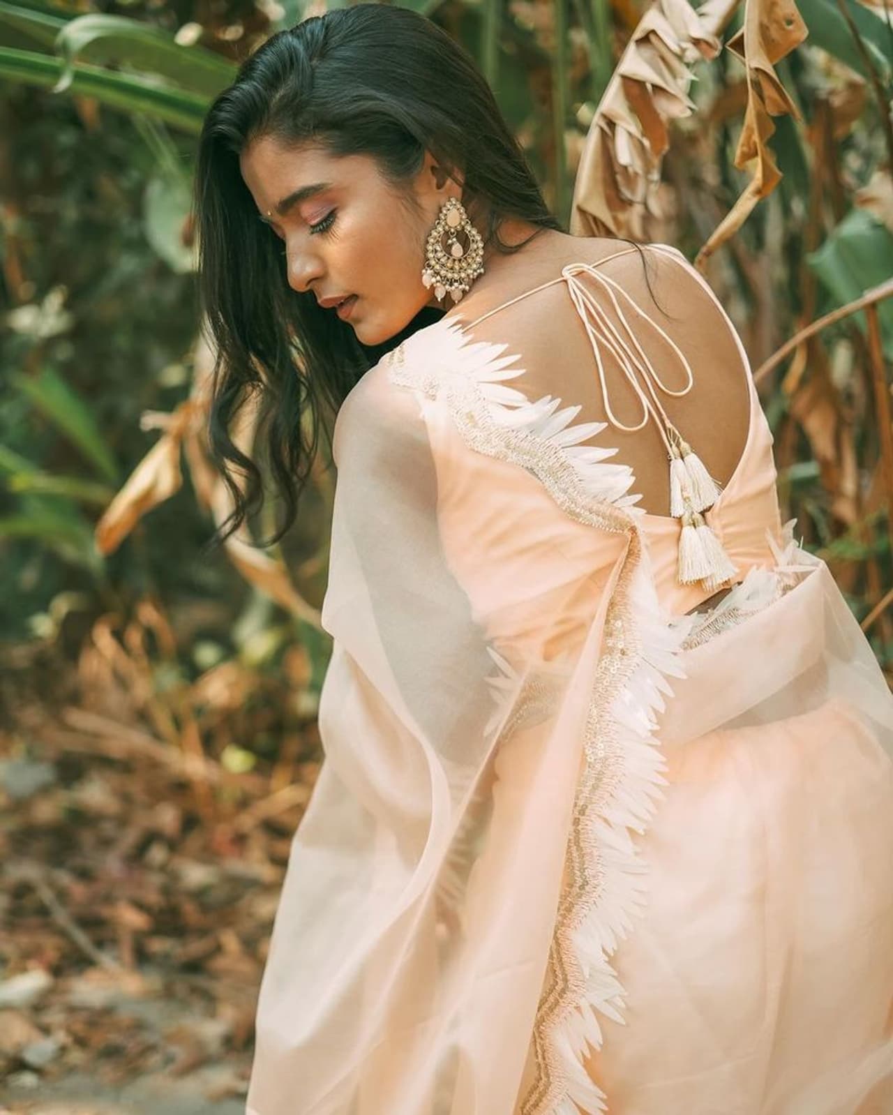 ಚೈತ್ರಾ ಆಚಾರ್ ಪೀಚ್ ಸೀರೆಯಲ್ಲಿ ಗರಿ ಬಿಚ್ಚಿದ ಹಕ್ಕಿಯಂತೆ ಕ್ಯಾಮೆರಾಗೆ ವಿವಿಧ ಭಂಗಿಗಳಲ್ಲಿ ಪೋಸ್ ಕೊಟ್ಟಿದ್ದಾರೆ. ನಟಿ ತನ್ನ ಇನ್ಸ್ಟಾಗ್ರಾಮ್ನಲ್ಲಿ ಈ ಫೋಟೋಗಳನ್ನು ಹಂಚಿಕೊಂಡಿದ್ದಾರೆ.