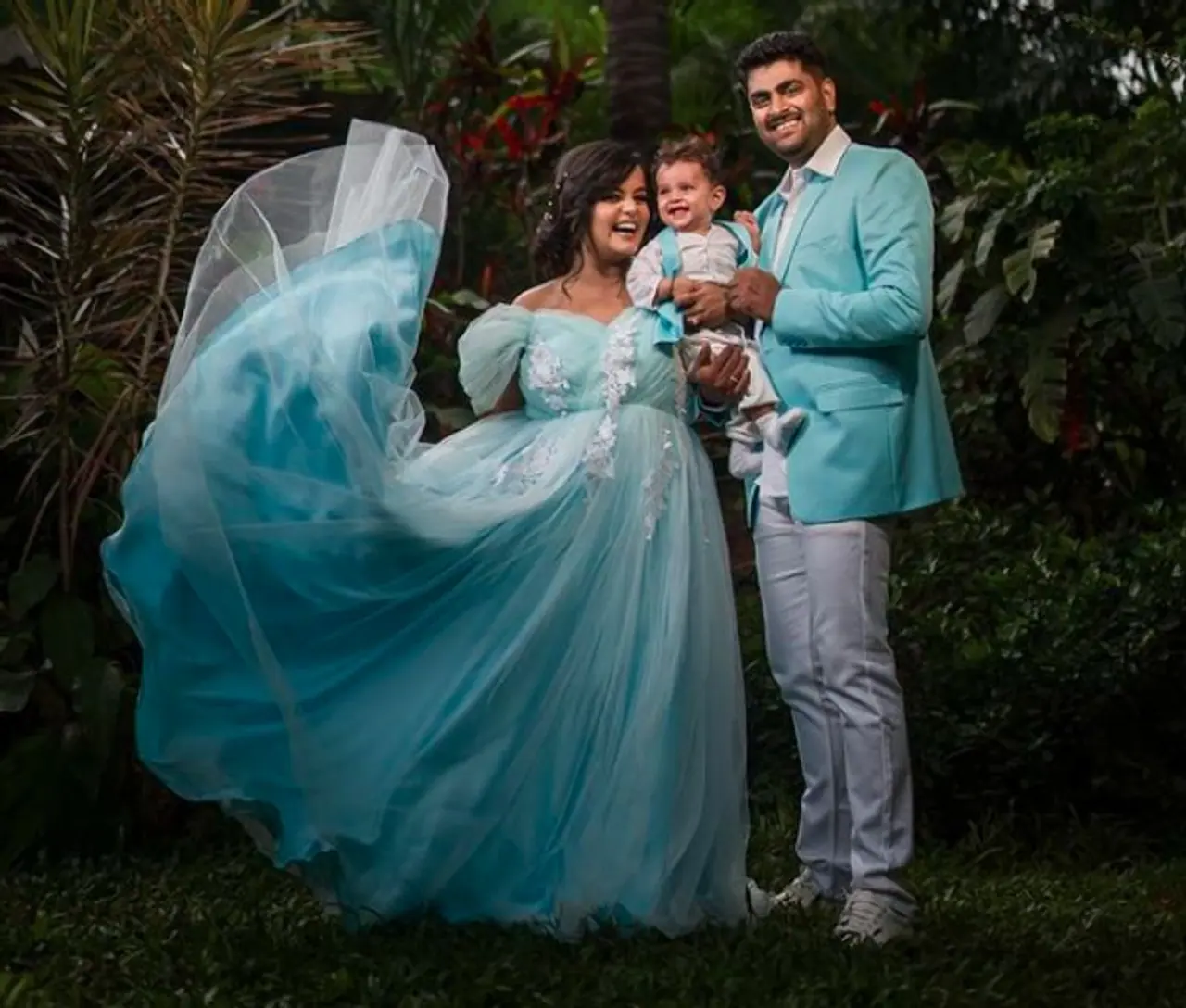 ಆಕಾಶ ನೀಲಿ ಬಣ್ಣದ ಲಾಂಗ್ ಗೌನ್ ಧರಿಸಿದ್ದ ಮಯೂರಿ ಜೊತೆ ಅವ ಪತಿ ಹಾಗೂ ಮಗನೂ ಮ್ಯಾಚಿಂಗ್ ಉಡುಗೆ ತೊಟ್ಟಿದ್ದರು. ವೈಟ್ ಹಾಗೂ ಸ್ಕೈ ಬ್ಲೂ ಕಾಂಬಿನೇಷನ್ನಲ್ಲಿ ಫ್ಯಾಮಿಲಿ ಮಿಂಚಿದೆ.