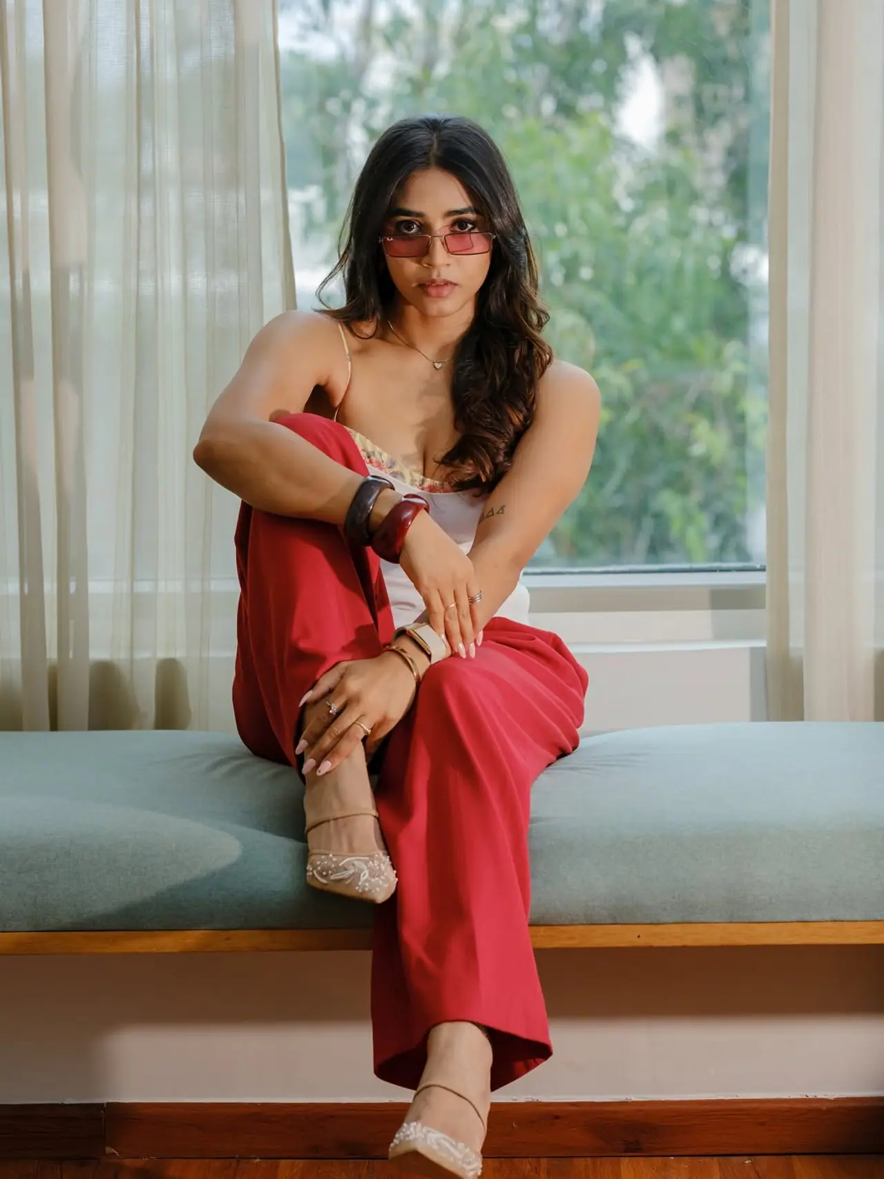 ಸಪ್ತಮಿ ಗೌಡ ರೆಡ್ & ವೈಟ್ ಕಾಂಬಿನೇಷನ್ ಡ್ರೆಸ್ನಲ್ಲಿ ಮಾಡಿಸಿರೋ ಫೋಟೋಶೂಟ್ ಸಖತ್ ಮಾರ್ಡನ್ ಆಗಿದೆ. ಜೊತೆಗೆ ಅವರು ತೊಟ್ಟಿರೋ ಬಳೆಗಳು, ವಾಚ್ ಸಖತ್ ಸ್ಟೈಲಿಶ್ ಆಗಿದೆ. ವಿಶೇಷವಾಗಿ ಅವರ ಕನ್ನಡಕದ ಮೇಲೆ ನೆಟ್ಟಿಗರ ಕಣ್ಣು ಬಿದ್ದಿದೆ.