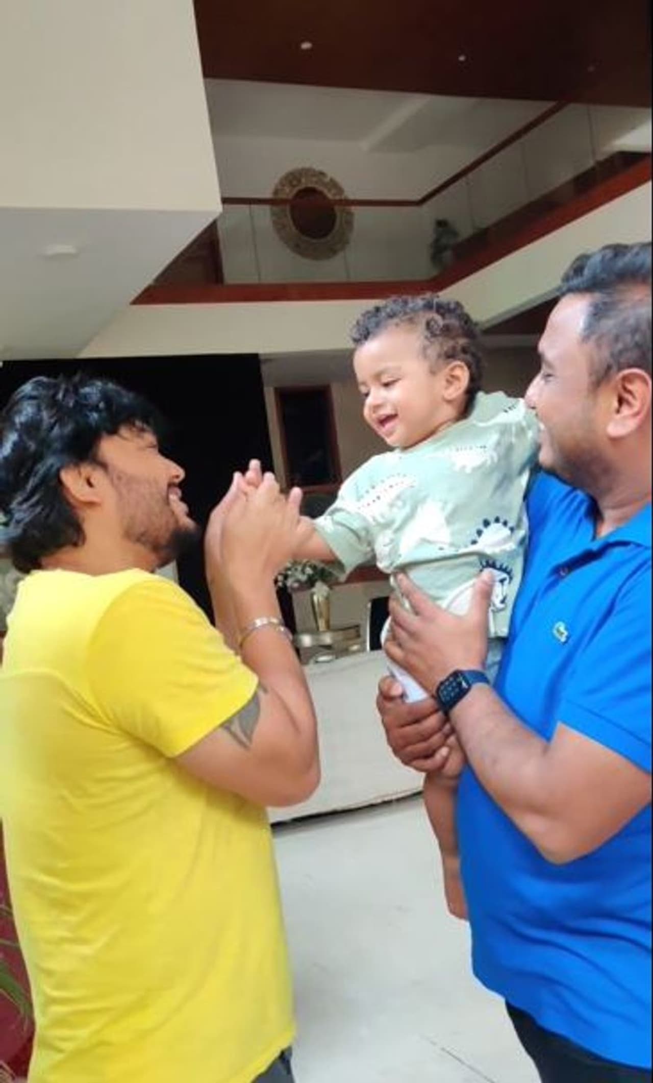 ಅಥರ್ವ್ ಮತ್ತು ಆಧವ್ನ ಹಿಡಿದುಕೊಂಡು ಗಣೇಶ್ ಮುದ್ದಾಡಿದ್ದಾರೆ. ತಂದೆ ಜಗದೀಶ್ ಮಗುವನ್ನು ಎತ್ತಿಕೊಂಡಿರುವ ಗಣೇಶ್ ಬಾಕ್ಸಿಂಗ್ ಮಾಡುತ್ತಾರೆ.
