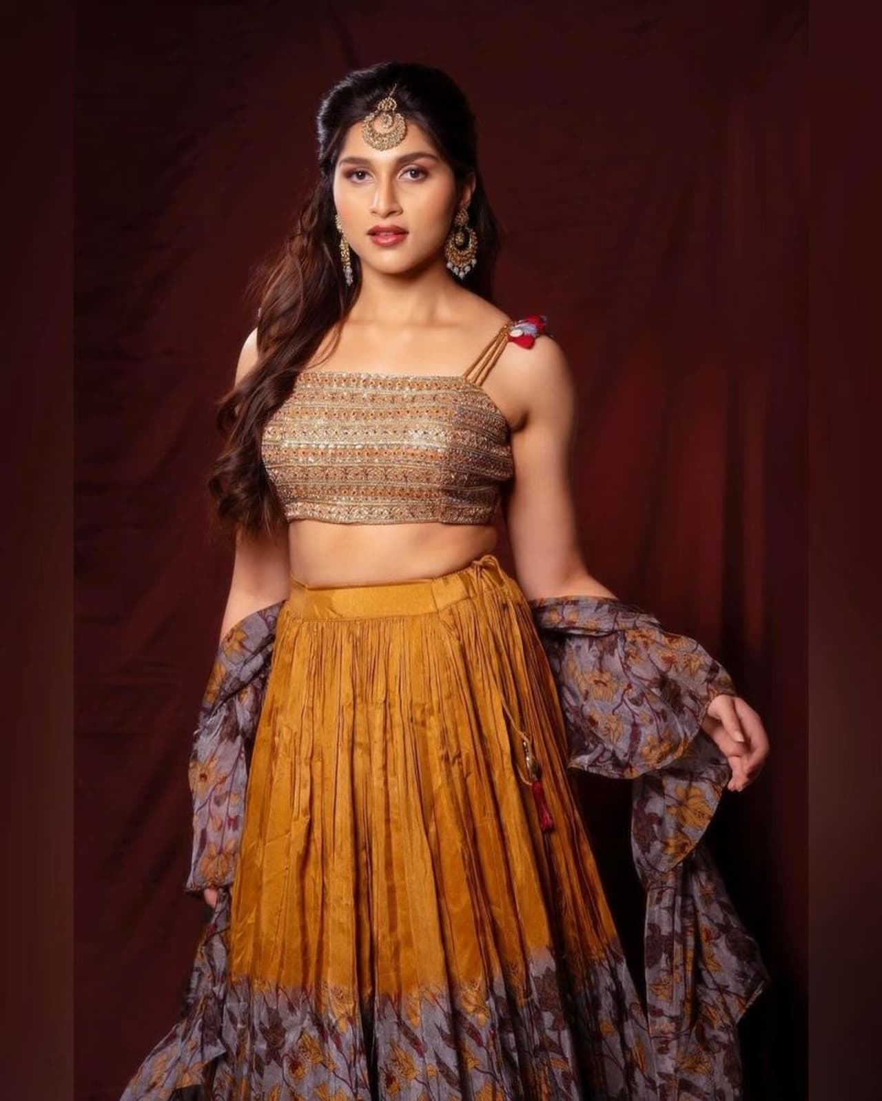 ಹಳದಿ, ನೀಲಿ ಮಿಕ್ಸ್ಡ್ ಬಣ್ಣದ ಲಂಗ ಜೊತೆಗೆ ಸ್ಟ್ರಾಪ್ ಬ್ಲೌಸ್ ಧರಿಸಿ, ಅದಕ್ಕೊಪ್ಪುವ ಕಿವಿಯೋಲೆ ಮತ್ತು ಮುಂದಾಲೆ ಧರಿಸಿ, ಫೋಟೋಕ್ಕೆ ಪೋಸ್ ನೀಡಿದ್ದು, ಯಾವಾಗಲೂ ಜೀವನದ ಬ್ರೈಟ್ ಸೈಡ್ ಮಾತ್ರ ನೋಡಿ ಎಂದು ಕ್ಯಾಪ್ಶನ್ ಕೂಡ ಕೊಟ್ಟಿದ್ದಾರೆ.
