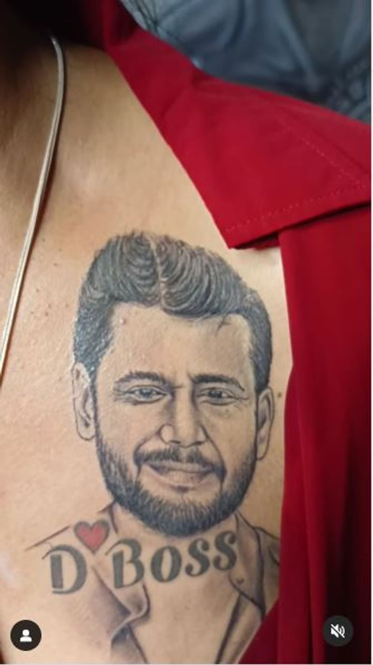 ಎದೆ ಮೇಲೆ ದರ್ಶನ್ ಮುಖವನ್ನು ಟ್ಯಾಟೂ ಹಾಕಿಸಿಕೊಂಡು ಅದರಲ್ಲಿ ಡಿ-ಬಾಸ್ ಎಂದು ಬರೆಸಿಕೊಂಡಿದ್ದಾರೆ. ಈ ಅಭಿಮಾನಕ್ಕೆ ಎಲ್ಲರೂ ಶಾಕ್ ಆಗಿದ್ದಾರೆ.