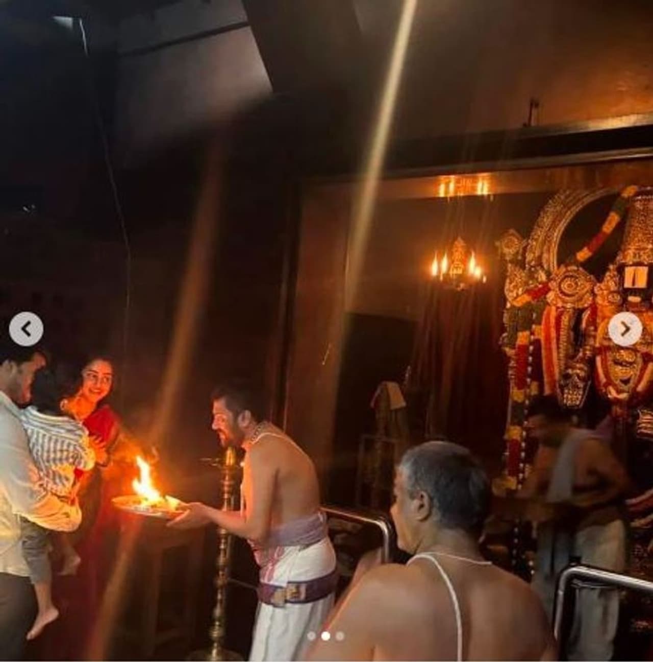 ನಿಖಿಲ್ ಕುಮಾರಸ್ವಾಮಿ, ರೇವತಿ ಮತ್ತು ಅವ್ಯಾನ್ ದೇವ್ ವಿಶೇಷ ಪೂಜೆ ಸಲ್ಲಿಸಿದ್ದಾರೆ. ಗುಡಿಯಲ್ಲಿ ಕ್ಲಿಕ್ ಮಾಡಿರುವ ಫೋಟೋ ಎಲ್ಲೆಡೆ ವೈರಲ್ ಆಗುತ್ತಿದೆ.