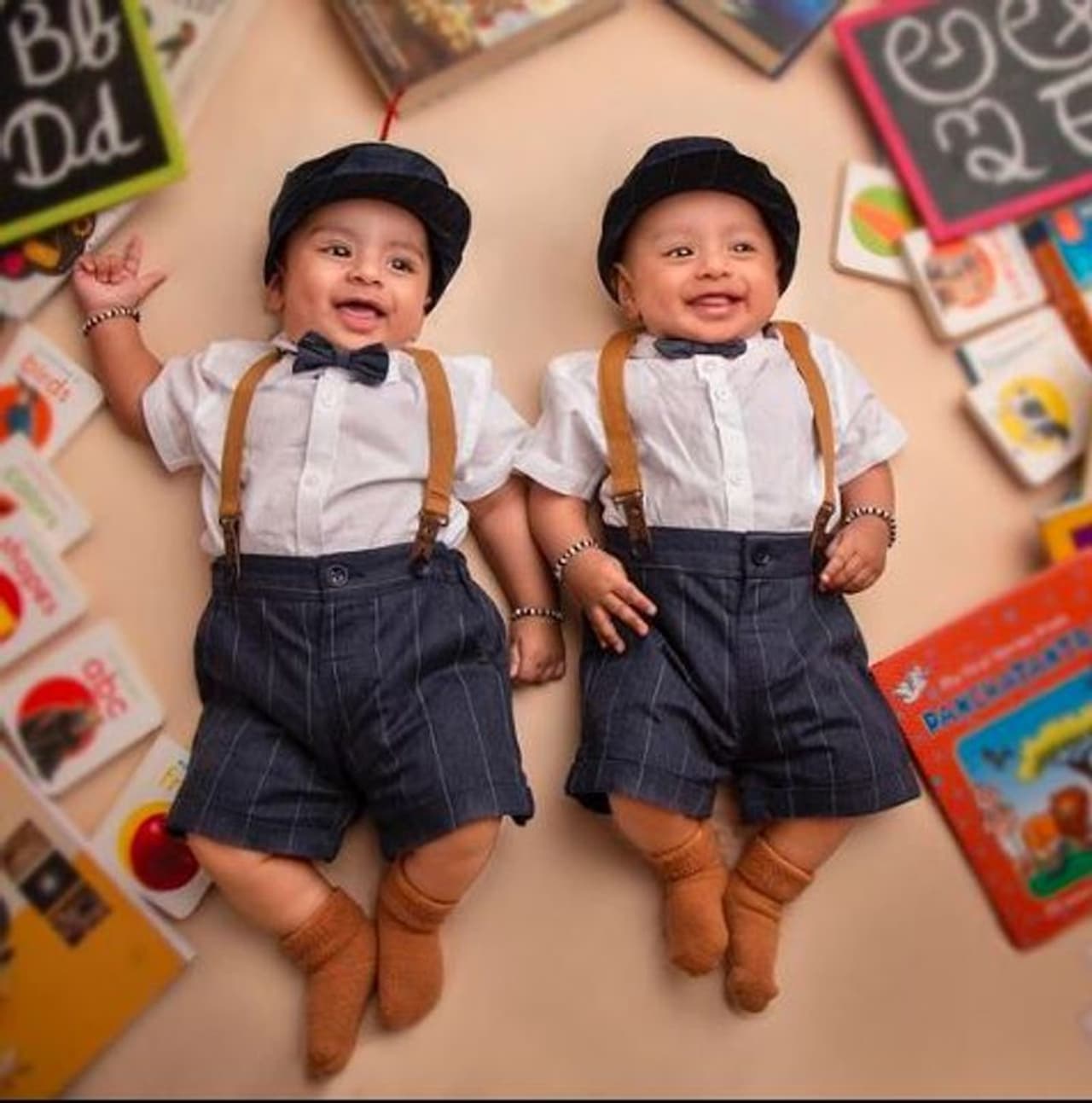 ಡೆನಿಮ್ ಡಂಗ್ರಿ ವೈಟ್ ಶರ್ಟ್ ಮತ್ತು ಬೋ ಟೈ ಕಾಂಬಿನೇಷನ್ನಲ್ಲಿ ಇಬ್ಬರೂ ಮಕ್ಕಳು ನಗುತ್ತಿರುವ ಫೋಟೋವನ್ನು ಅಮೂಲ್ಯ ಅಪ್ಲೋಡ್ ಮಾಡಿದ್ದಾರೆ.