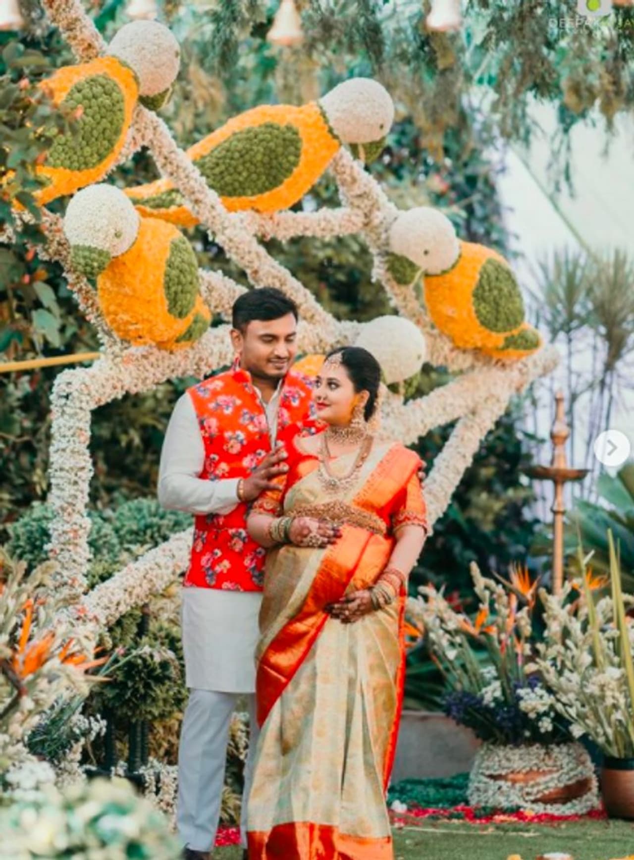 ಸೀಮಂತ ಕಾರ್ಯಕ್ರಮವನ್ನು ದೀಪಕ್ ವಿಜಯ್ (Deepak Vijay) ಸೆರೆ ಹಿಡಿದಿದ್ದಾರೆ. ಹಳದಿ, ಹಸಿರು ಮತ್ತು ಬಿಳಿ ಬಣ್ಣದ ಹೂಗಳನ್ನು ಬಳಸಿ ಗಿಣಿ (Parrot)ಗಳನ್ನು ಮಾಡಿ ಇಡೀ ಸ್ಥಳವನ್ನು ಅಲಂಕಾರ ಮಾಡಲಾಗಿತ್ತು.