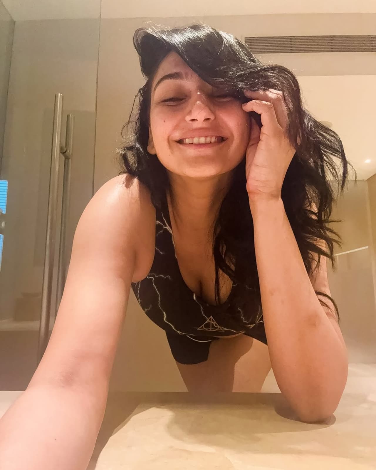 ಹೌದು! ರಾಗಿಣಿ, ಮಾರ್ನಿಂಗ್ ಜಿಮ್ ವರ್ಕೌಟ್ ಮುಗಿಸಿ, ಜಿಮ್ ಡ್ರೆಸ್ನಲ್ಲಿ ಬಾತ್ರೂಮ್ ಕನ್ನಡಿ ಮುಂದೆ ನಿಂತು ಪೋಟೋ ಕ್ಲಿಕ್ಕಿಸಿಕೊಂಡಿದ್ದಾರೆ. ಜೊತೆಗೆ ಡಿಫರೆಂಟ್ ಪೋಸ್ ಸಹ ಕೊಟ್ಟಿದ್ದಾರೆ.