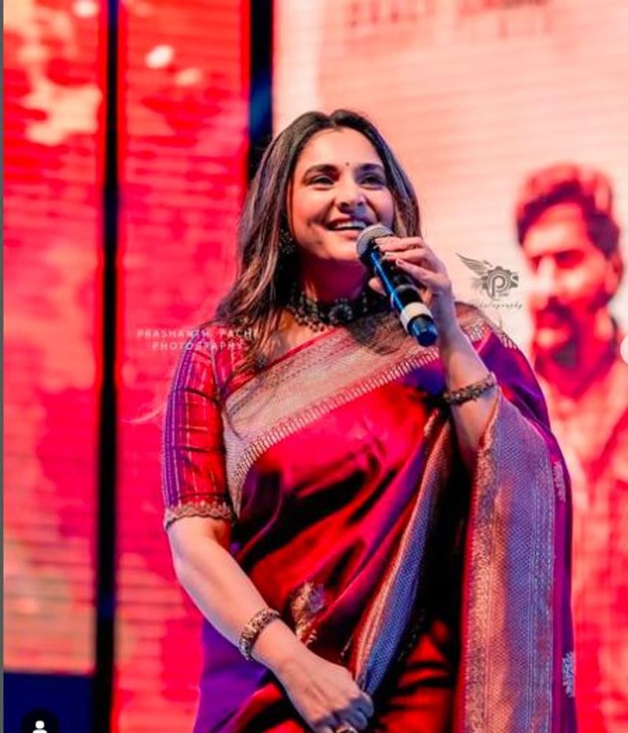 ಕೆಲವು ದಿನಗಳ ಹಿಂದೆ ರಮ್ಯಾ ದಾವಣಗೆರೆಯಲ್ಲಿ ಹೆಡ್ಬುಷ್ ಕಾರ್ಯಕ್ರಮದಲ್ಲಿ ಭಾಗಿಯಾಗಿದ್ದರು. ಆಗ ಕೆಂಪು ಬಣ್ಣದ ರೇಶ್ಮೆ ಸೀರೆಗೆ ಸ್ಟೇಮೆಂಟ್ ಆಭರಣ ಧರಿಸಿದ್ದರು.