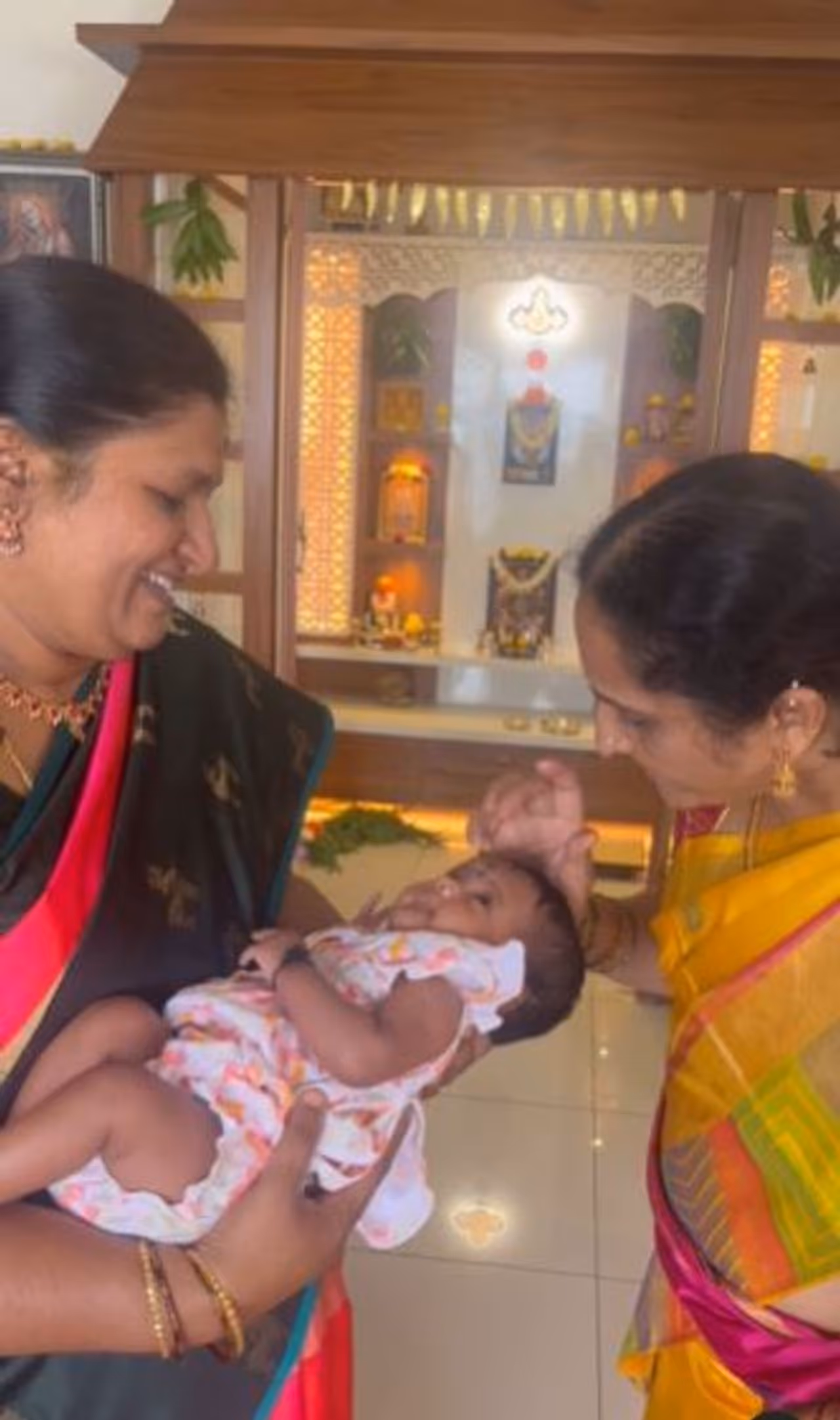 ಈಗ ಮಗಳಿಗೆ ಅದ್ಧೂರಿಯಾಗಿ ನಾಮಕರಣ ಮಾಡಿದ್ದಾರೆ. ಶಾಸ್ತ್ರ ಸಂಪ್ರದಾಯದ ಪ್ರಕಾರ ನಾಮಕರಣ ಮಾಡಿ ವಿಭಿನ್ನ ಹೆಸರಿಟ್ಟಿದ್ದಾರೆ.