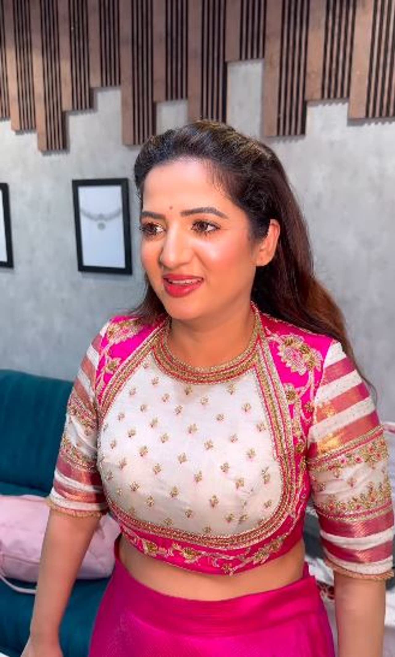ಪಿಂಕ್ ಬಣ್ಣದ ಸಿಲ್ಕ್ ಸ್ಕರ್ಟ್, ಕ್ರೀಂ ಆಂಡ್ ಪಿಂಕ್ ಬಣ್ಣದ ಬ್ಲೌಸ್ನಲ್ಲಿ ಕಾವ್ಯಾ ಶಾ ಮಿಂಚಿದ್ದಾರೆ. ಇದಕ್ಕೆ ಹೈ ಲೈಟ್ ಆಗುವಂತೆ ಚಿನ್ನದ ಆಭರಣಗಳನ್ನು ಧರಿಸಿ ಪೋಸ್ ಕೊಟ್ಟಿದ್ದಾರೆ.
