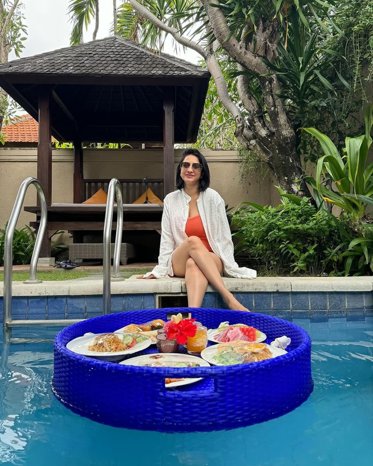 ಈಜುಕೊಳದಲ್ಲಿ ಪತಿಯೊಂದಿಗೆ ಕ್ಲಿಕ್ಕಿಸಿಕೊಂಡ ಫೋಟೋಗಳು ಸೋಶಿಯಲ್ ಮೀಡಿಯಾದಲ್ಲಿ ವೈರಲ್ ಆಗುತ್ತಿವೆ. ಪತಿ ಅರುಣ್ ಜೊತೆ ಬಾಲಿಗೆ ತೆರಳಿರುವ ಮಾನ್ವಿತಾ ಕಾಮತ್ ಕ್ವಾಲಿಟಿ ಸಮಯ ಕಳೆಯುತ್ತಿದ್ದಾರೆ.