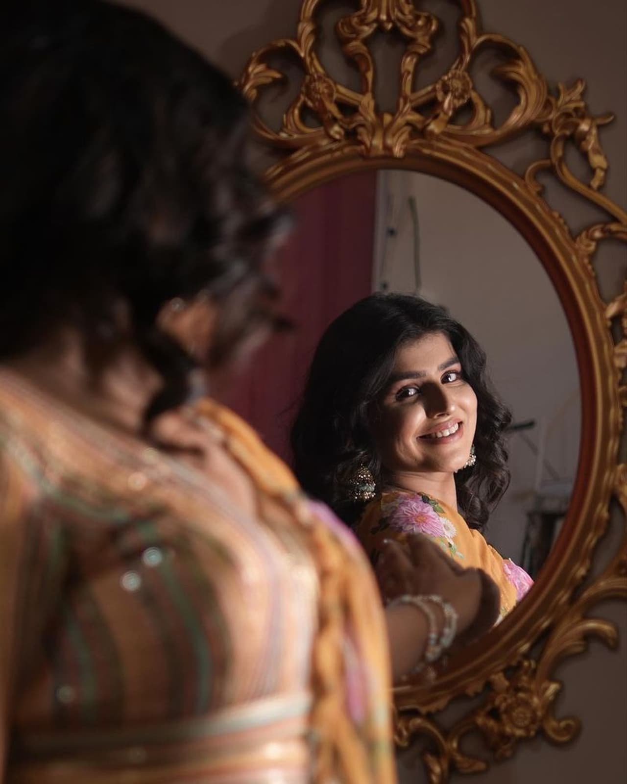 ಶರಣ್ಯ ಶೆಟ್ಟಿ ಗೋಲ್ಡನ್ ಬಣ್ಣದ ಸೀರೆಯಲ್ಲಿ ಮಿಂಚುತ್ತಿದ್ದರೆ, ಗಣೇಶ್ (Golden Star Ganesh) ಪಂಚೆ, ಶರ್ಟ್ ಧರಿಸಿ ಮದುಮಗನಂತೆ ಕಾಣಿಸುತ್ತಿದ್ದಾರೆ. ಇದೆಲ್ಲವೂ ಕೃಷ್ಣಂ ಪ್ರಣಯ ಸಖಿ ಸಿನಿಮಾದ ಶೂಟಿಂಗ್ ಫೋಟೋ ಆಗಿದೆ.