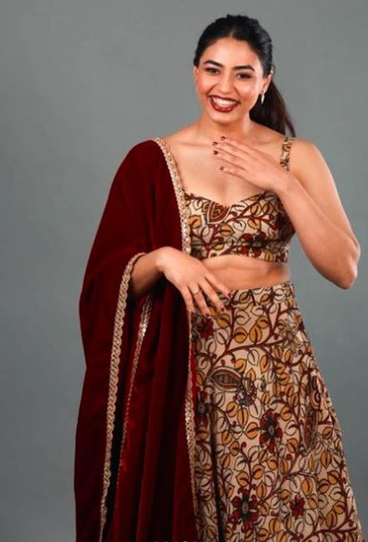 ಹೌದು! ಮರೂನ್ ಬಣ್ಣದ ಲೆಹೆಂಗಾದಲ್ಲಿ ಸಪ್ತಮಿ ಗೌಡ ಮಿಂಚಿದ್ದಾರೆ. ಈ ವೇಳೆ ಅವರ 6 ಪ್ಯಾಕ್ಸ್ ನೆಟ್ಟಿಗರ ಗಮನ ಸೆಳೆದಿದೆ. ಈ ಹಿಂದೆ ಸಪ್ತಮಿ ಗೌಡ ವರ್ಕೌಟ್ ವಿಡಿಯೋ ವೈರಲ್ ಆಗಿತ್ತು.